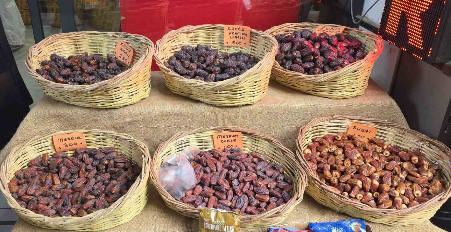 Kütahya’da Ramazan ayının başlamasına sayılı günler kala, iftar ve sahur sofralarının vazgeçilmezi olan hurma, tezgâh ve raflardaki yerini aldı. Özellikle Aşağı Çarşı bölgesinde hurmaya olan ilginin son günlerde belirgin şekilde arttığı gözlemlendi.