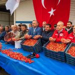 Manisa’nın Şehzadeler ilçesinde erkenci kiraz cinsleri kuzey yarımkürede yetişen ilk kiraz olma özelliğiyle gerek yurt içi gerekse de yurtdışı pazarda önemli bir yere sahip. Nisan ayının sonlarına doğru gelirken, çiftçiler de hasat edilen ilk kirazı pazara yetiştirmek için tatlı bir telaşa girdi. Bu yıl pazara kirazı ilk getiren kiraz üreticisi Yusuf Bakan, düzenlenen açık arttırmayla hasat ettiği kirazı kilogramı 6 bin TL’den kiraz tüccarı Mesut Altıok’a sattı.