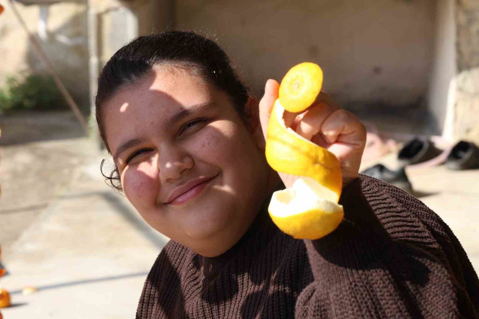 Okul harçlığını limon ve turunç kabuklarından çıkardığını söyleyen Nimet Su Yiğenoğlu, “Babamla annemle birlikte tatilde aileme yardım ediyorum. 60-65 TL’ye alıcı buluyor. Ben de harçlığımı çıkarıyorum. Bahçelerden topluyoruz, soyuyoruz ve kuruyan kabukları satıyoruz” diye konuştu.