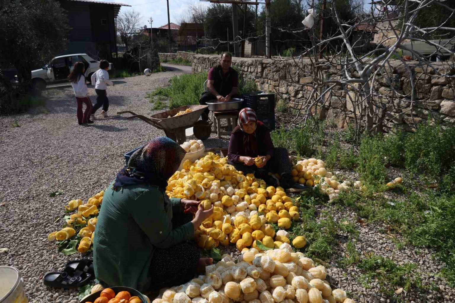 Kozan ilçesine bağlı Turunçlu Mahallesi’nde kadınlar, dalında kalan ve dökülen limon ile turunçların kabuklarını imece usulü soyarak değerlendiriyor. Her yıl bahar ayında toplanarak meyvelerin kabuklarını soyan kadınlar, kuruttukları kabuklarla ve turunçtan elde ettikleri ekşi ile ev ekonomisine katkı sağlıyor.
