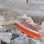 Bursa’nın Gemlik ilçesi ve Kumla sahilinde gece saatlerinde etkisini artıran şiddetli lodosun yol açtığı dev dalgaların dövdüğü sahilde bağlı bulunan çok sayıda küçük tekne, fırtınanın şiddetine dayanamayarak su alıp battı ya da sürüklenerek ağır hasar aldı.
