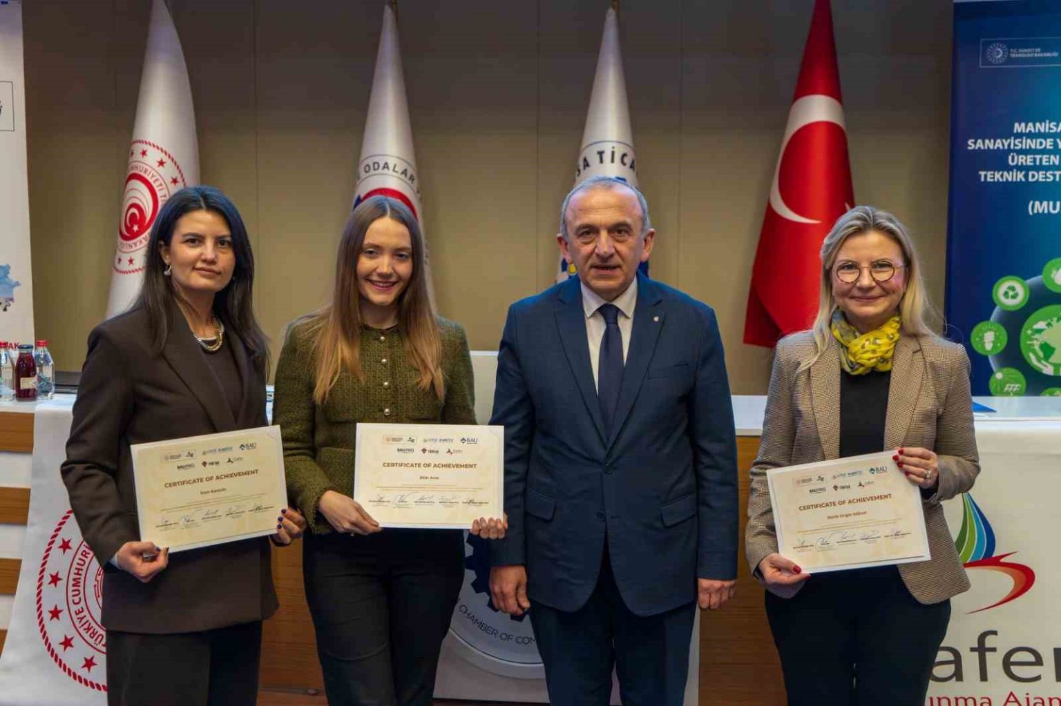 Programa katılan 11 işletmenin temsilcisine sertifikaları düzenlenen törenle verildi. Manisa Ticaret ve Sanayi Odası ev sahipliğinde gerçekleştirilen törene Manisa Vali Yardımcısı Erhan Günay, Manisa Ticaret ve Sanayi Odası Başkanı Mehmet Yılmaz, Manisa Celal Bayar Üniversitesi Teknoloji Geliştirme Bölgesi ve Teknoloji Transfer Ofisi Genel Müdürü Prof. Dr. Ali Demir, Zafer Kalkınma Ajansı Genel Sekreteri ve Yönetim Kurulu Üyesi Kutlu Eser ve firma temsilcileri katıldı.