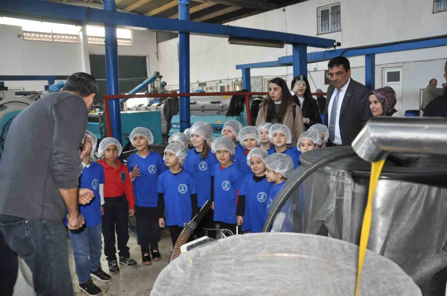 Okul Müdürü Süleyman Sarı ise “Anasınıfı öğretmenlerimizin hazırladığı zeytin ve sıkım projesi kapsamında öğrencilerimizi zeytinyağı fabrikasına götürdük. Öğrencilerimiz zeytinyağının nasıl üretildiğini görerek ve yaşayarak öğrendi. Böylece zeytinin değerini daha iyi kavradılar. Projede emeği geçen öğretmenlerimiz Sadık Şentürk ve Duygu Yelken’e, velilerimize ve İlçe Tarım ve Orman Müdürlüğümüze teşekkür ediyorum” diye konuştu.
