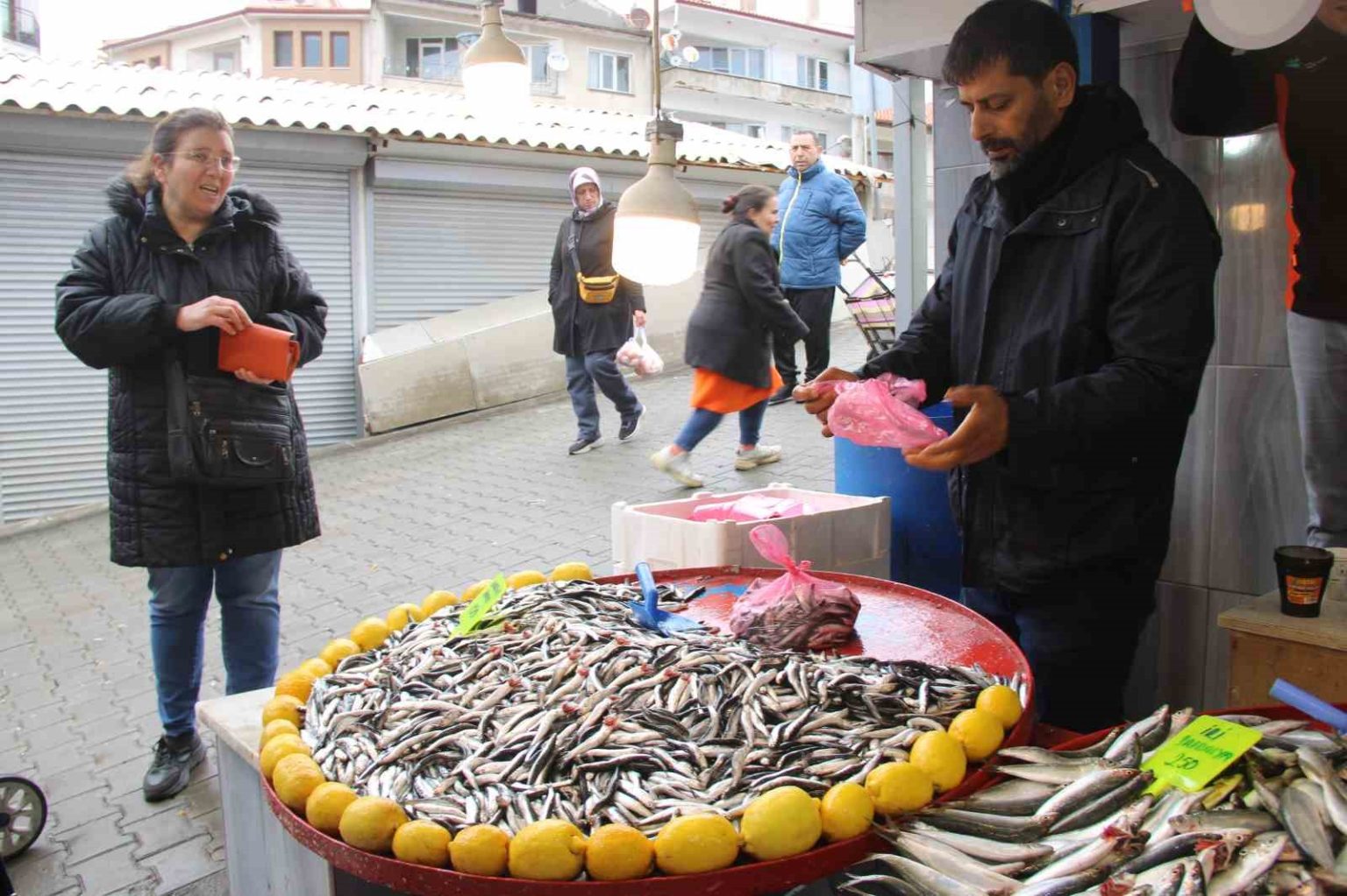 Doğan, “Balık bu sıralar bol çıktı. Ekonomiyle alakası yok, balık bol çıkarsa ucuz olur. Şu anda kilosu 150 liradan satılıyor. Belki akşamüstü 100 liraya kadar verebiliriz. 2 kilo alana 250 liraya bırakıyoruz” dedi.