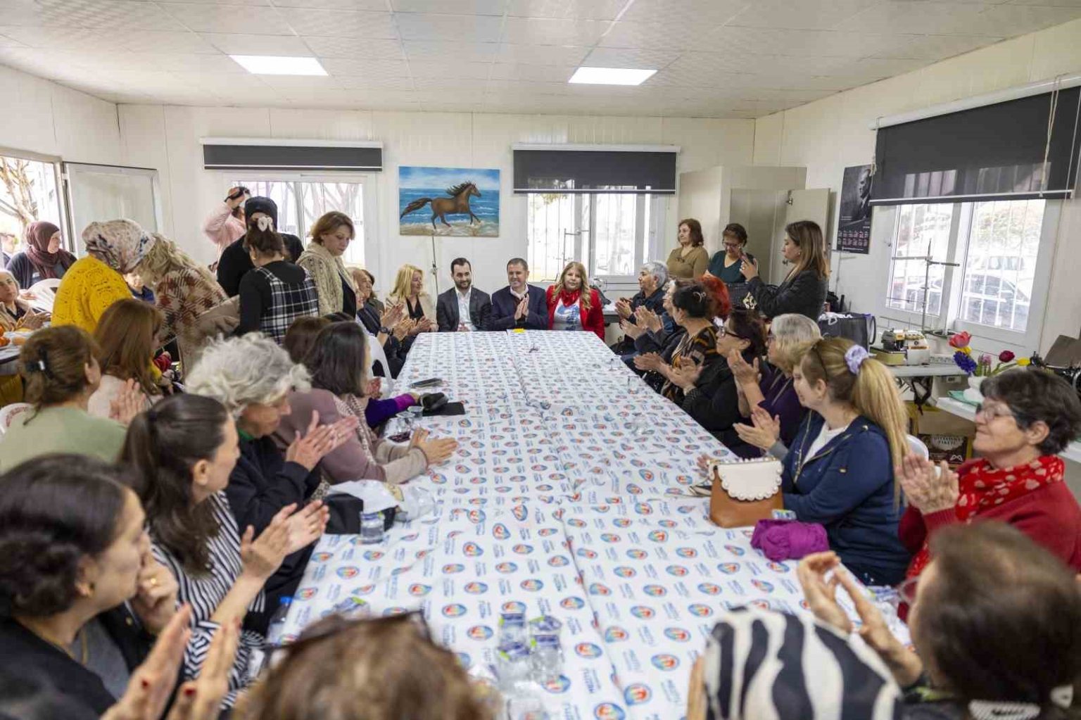 Mezitli Belediyesinin kadın atölyelerinde verilen ücretsiz kurslarla üretime katılan kadınlar hem sosyalleşiyor hem de ekonomik kazanç elde ederken, Başkan Ahmet Serkan Tuncer kursiyerlerle bir araya geldi.