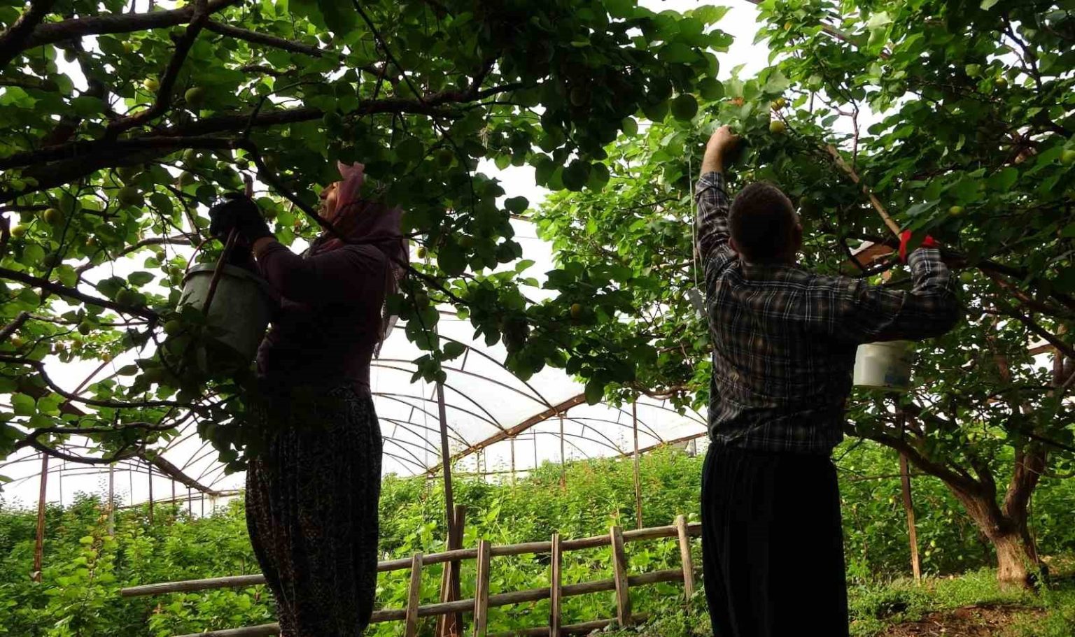 Örtü altında hasatta eşine yardım eden Zehra Sezer ise “İtina ile sofralara bir nimet göndereceğim diye uğraşıyorum. Kışın yetiştirmesi, yazın toplaması zor. Halkımız bunu seve seve yesin. Çok da güzel lezzetli kayısımız var. İtina ile topluyoruz kovaların içine bir tane bir tane koyuyoruz” ifadelerini kullandı.