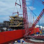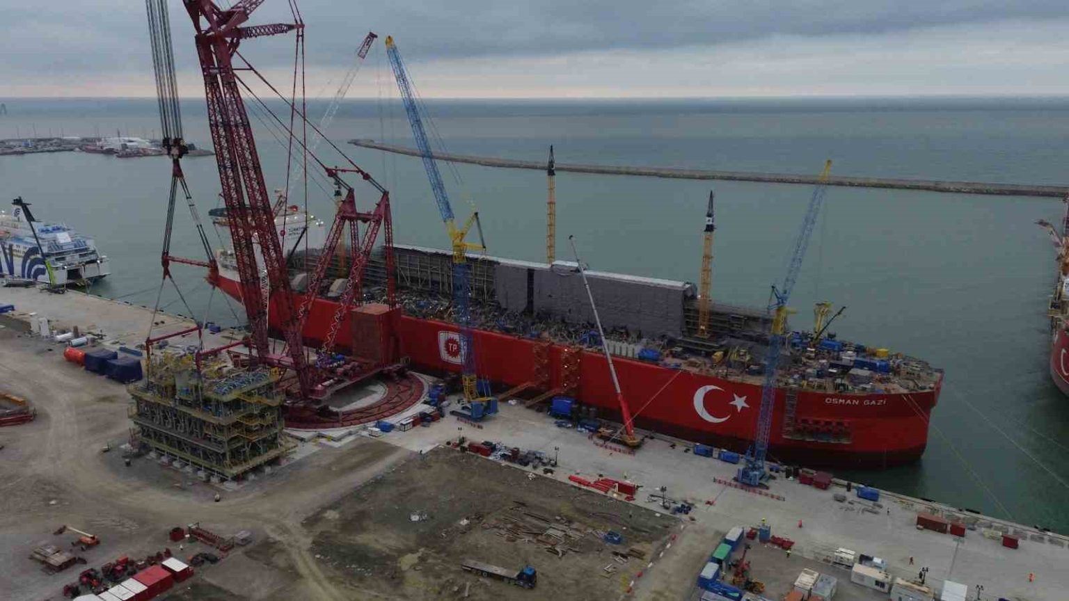 Türkiye’nin ilk yüzer üretim platformu Osman Gazi’nin Karadeniz’deki görevine bu yıl içinde başlayacak. Hazırlık çalışmaları Filyos Limanı’nda devam ederken kritik bir aşama başarıyla tamamladı. Deniz altındaki kuyu ve bağlantı hatlarına gönderilecek özel sıvıyı içinde barındıran MEG modülü Osman Gazi’ye eklendi.