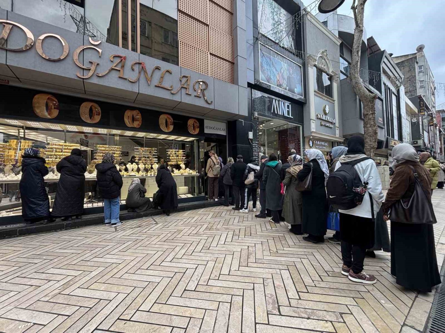 Kocaeli’de altın fiyatlarının gerilemesini fırsat bilen vatandaşlar kuyumcularda uzun kuyruklar oluşturdu.