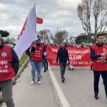 Bursa’da Birleşik Metal-İş Sendikası üyesi Prysmian fabrikası işçileri, MESS Grup Toplu İş Sözleşmesi (TİS) sürecine ilişkin alınan eylem kararları kapsamında Mudanya’da yürüyüş ve basın açıklaması gerçekleştirdi.