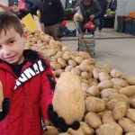 Dev patatesler, çocukların da ilgisini çekti. Anne ve babasından izin alarak tezgaha yaklaşan küçük Yağız Sarıkaya, iki dev patatesi eline alarak fotoğraf çektirmeyi ihmal etmedi.