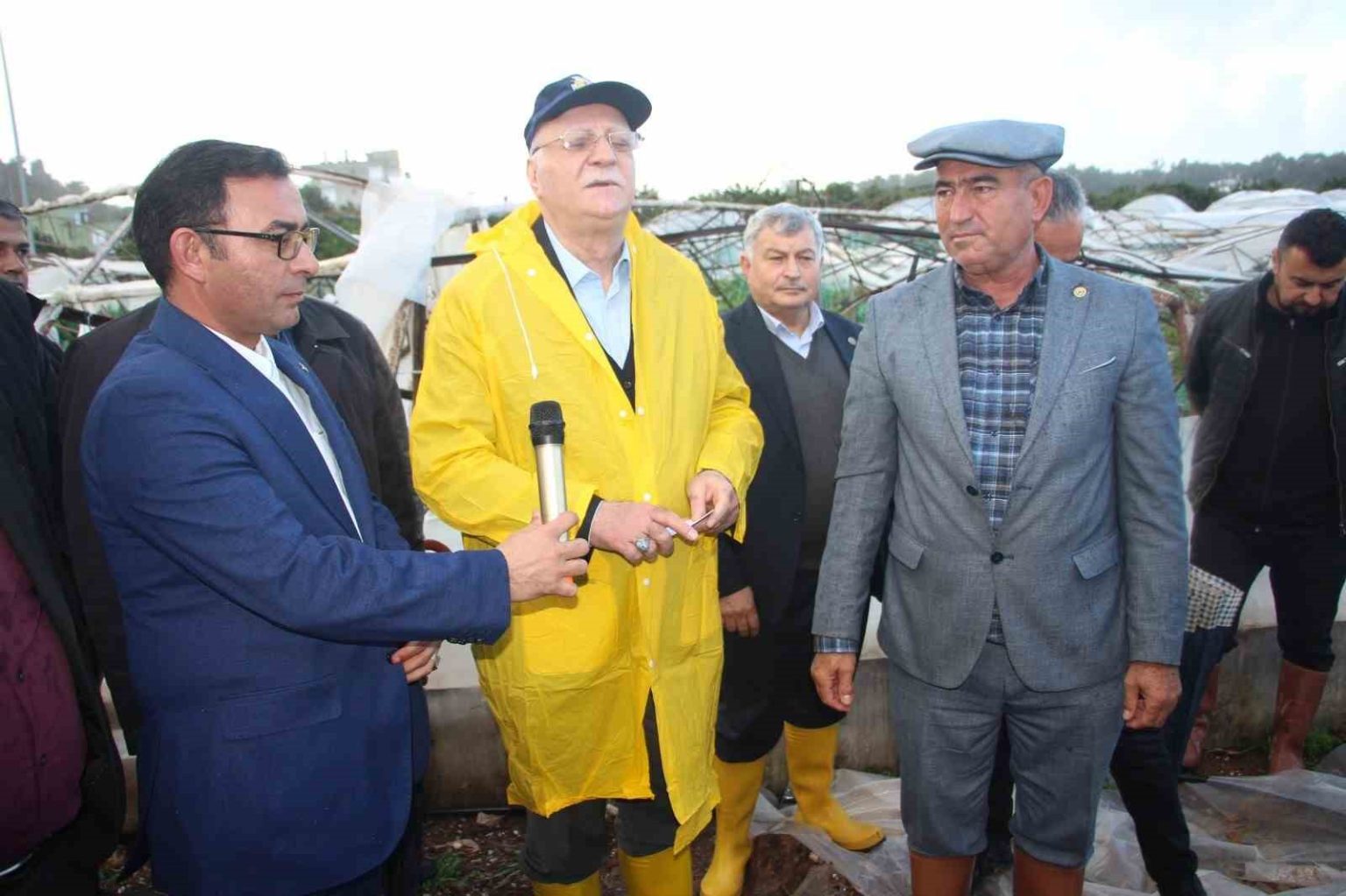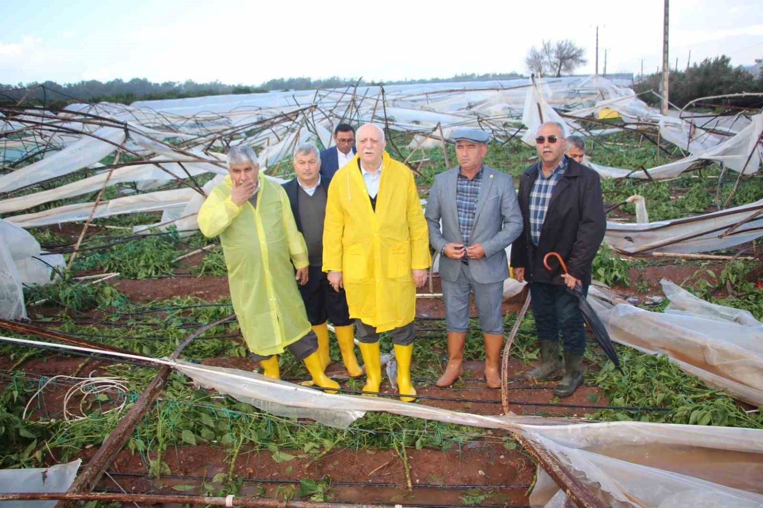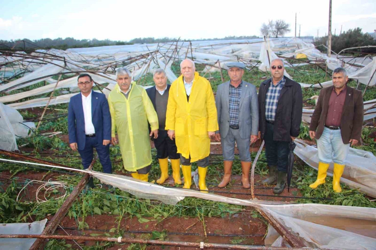 Mavikent Mahallesi’nde hortumdan zarar gören üreticileri ziyaret eden Genel Başkan Şemsi Bayraktar, iklim değişikliği ve mevsim kaymalarının tarım sektöründe ciddi kayıplara yol açtığını belirterek, Kumluca, Kemer, Aksu, Serik ve Kepez ilçelerinde 50 mahallede bin 437 üreticinin ve 5 bin 34 dekar meyve, sebze ve buğday alanının zarar gördüğünü söyledi.