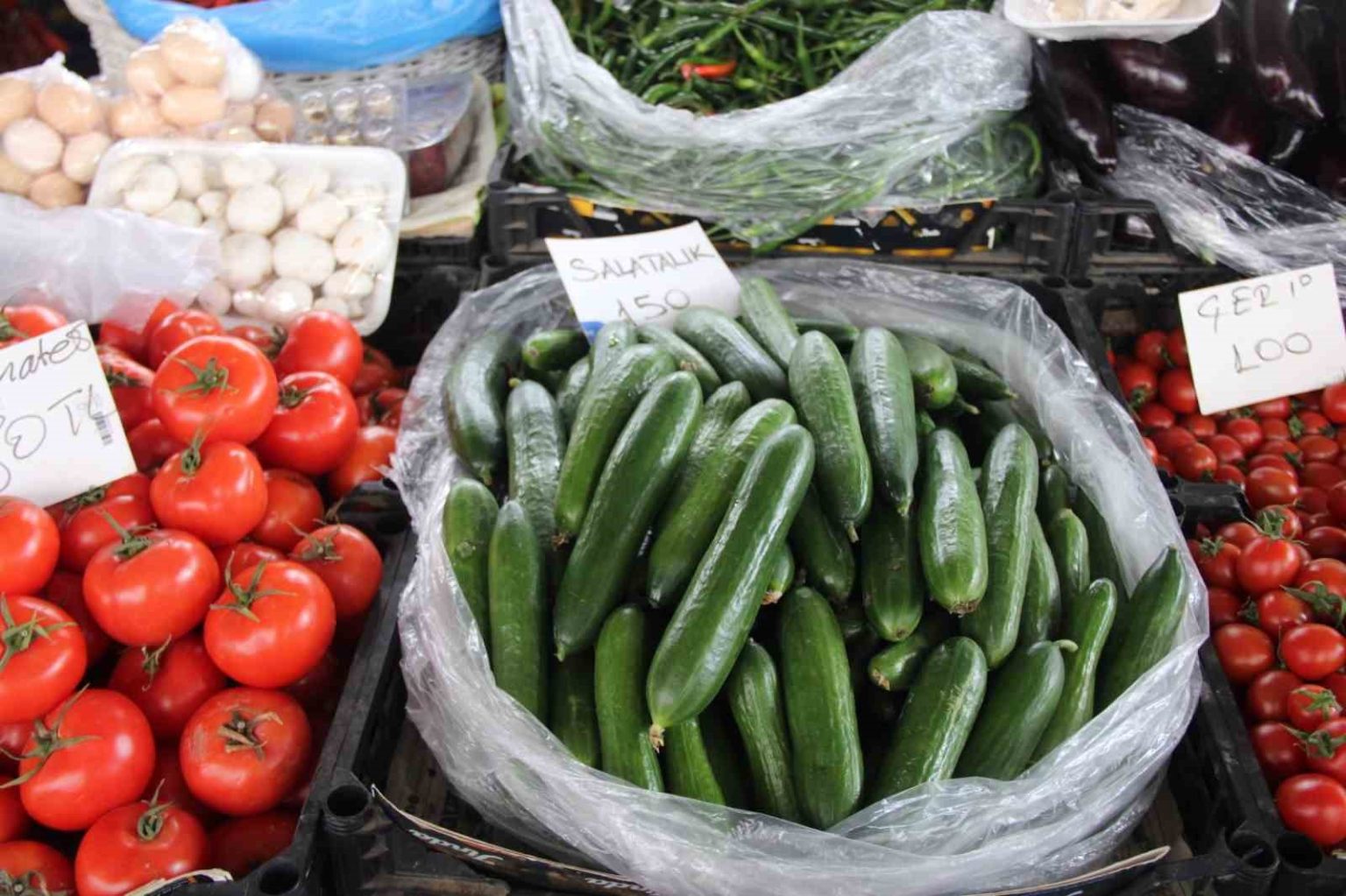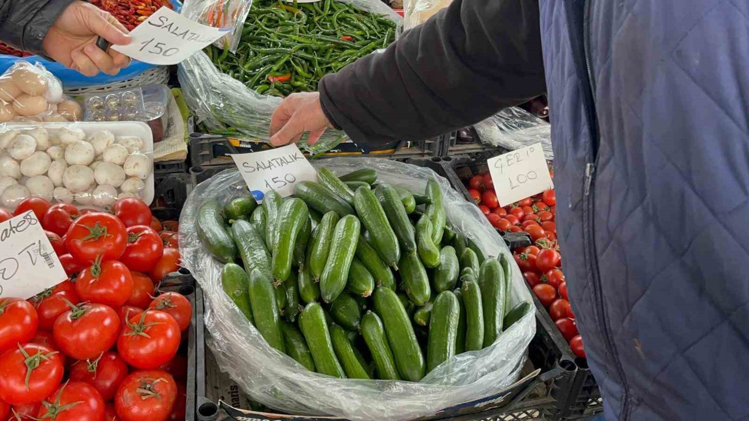Muğla’da kış aylarında etkili olan kuvvetli yağış ve fırtına seralarda büyük zarara yol açarken, üretimde yaşanan kayıplar sebze fiyatlarına yansıdı. Menteşe ilçesindeki semt pazarında salatalığın kilogram fiyatı 150 liraya kadar yükselerek rekor seviyeye ulaştı.