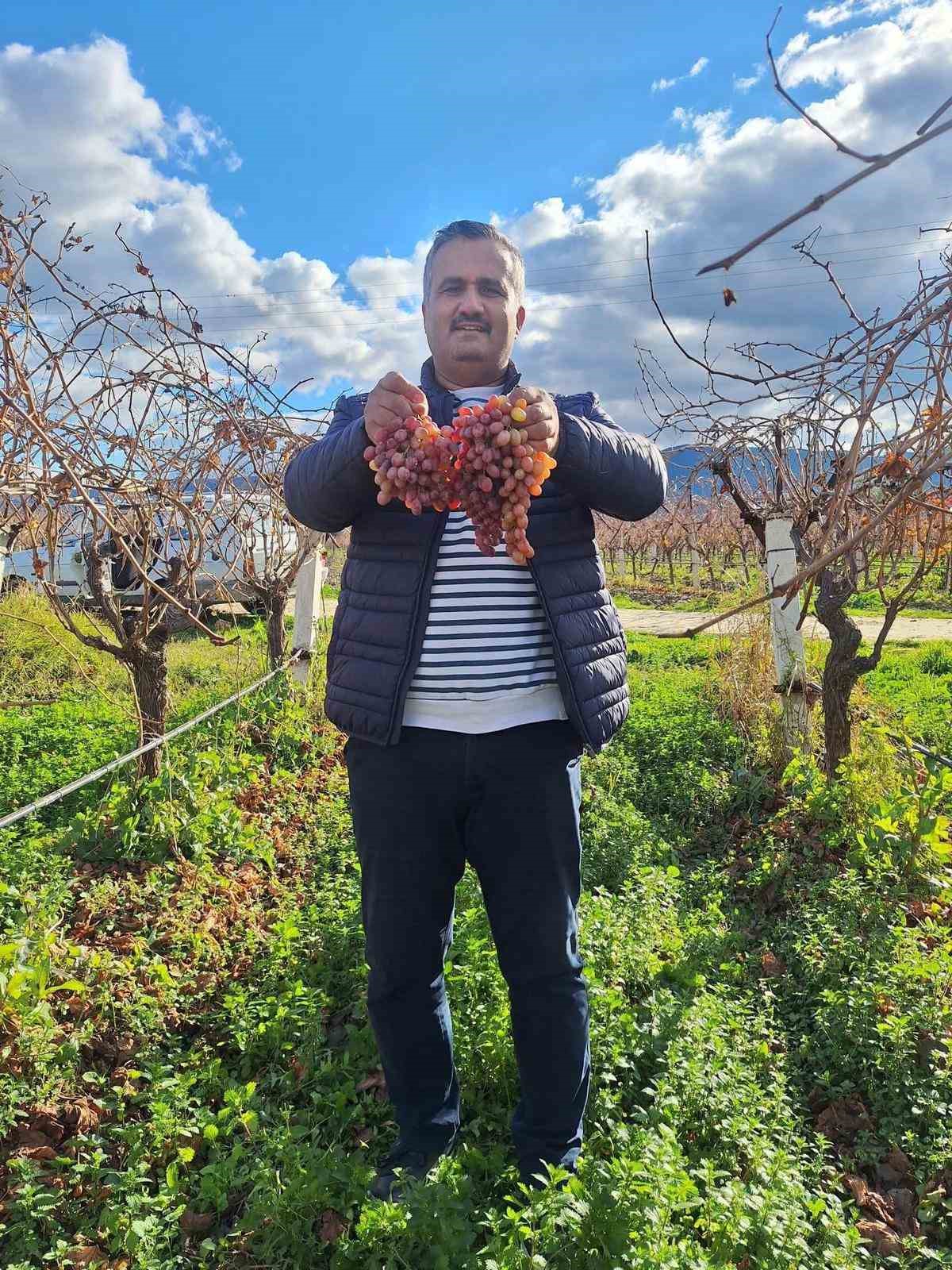 Crimson üzümü yetiştiren üretici Serhat Akkaya ise üzüm sezonunun sona erdiğini belirterek, “Bağımdaki Crimson üzümlerinden ayırdığım asmalardan topladığım üzümleri poşetleyerek konu komşuma ve arkadaşlarıma hediye ediyorum. Kış mevsiminde bile asmadan taze üzüm toplamak mümkün” diye konuştu.