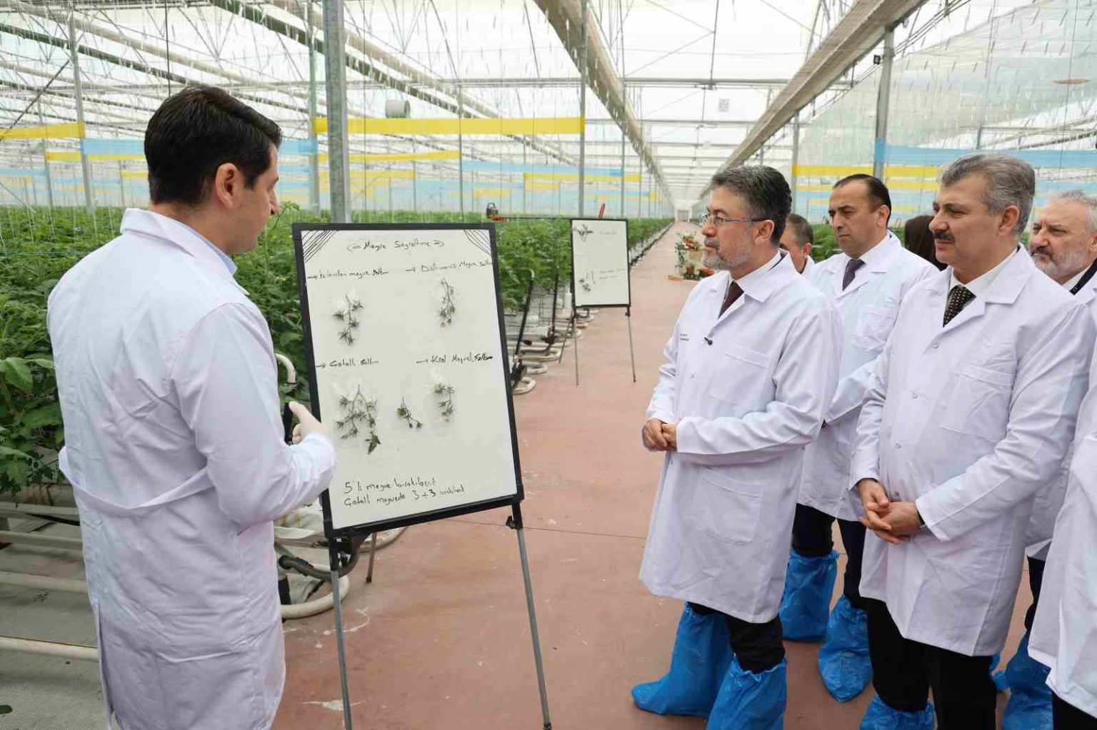 Tarım ve Orman Bakanı İbrahim Yumaklı Aksaray’ın merkeze bağlı Dikmen Köyü’nde faaliyet gösteren Jeotermal kaynaklı sera üretimi yapan işletmeyi ziyaret etti. Üretimle ilgili incelemelerde bulunan Bakan Yumaklı burada yaptığı açıklamada: “Tarımın stratejik bir sektör olduğunu, dünya son 5 senede çok farklı olaylarla bir sınamayla karşı karşıya olduğunu görmüş olduk. Pandemi ile başladı, küresel krizler oluştu. Son dönemde de özellikle savaş şartlarıyla birlikte gıda ile alakalı herkeste bir endişe oluşmuş durumda. Dolayısıyla stratejik bir sektör derken aslında ne kadar hayati bir sektör olduğunda ifade etmeye çalışıyoruz hep birlikte. Buna ilişkin en başta şunu söyleyeyim. Özellikle savaş şartlarının başlamasıyla birlikte İsrail, Amerika Birleşik Devletleri ve İran arasındaki doğal olarak tarımsal girdilerle ilgili bir endişe oldu. Bunu ilk andan itibaren söyledik. Bunlarla ilgili hazırlıklı olduğumuzu ifade ettik. Ben buradan tekrar bu konularda vatandaşlarımızın bizim açıklamalarımızı beklemelerini, bizim açıklamalarımıza itibar etmelerini özellikle istirham ediyorum. Bakın o ilk günlerdeki konuşulan şeylerin hiçbirisi şu anda yok. Ancak maalesef ki çok azınlık da olsalar bir kötü düşünce veya bir kötü şeyleri söyleme konusunda kendisini maalesef ki hazırlıklı tutan bir grubun oluşturmaya çalıştığı hava artık yok. Dolayısıyla başta gübre olmak üzere tarımsal girdilerle ilgili almış olduğumuz bütün tedbirler hamdolsun şu anda yerinde. Elbette ki takip ediyoruz savaşın gidişatını. Bunlarla ilgili de kısa, orta, uzun faaliyetlerimizi ve tedbirlerimizi planlamış vaziyetteyiz. Dolayısıyla hiçbir sorun olmayacak hamdolsun. İklim değişikliğini konuştuk. Küresel krizleri konuştuk. Şimdi de hepimizin yaşadığı ve takip ettiği gibi jeopolitik riskleri konuştuk. Yani ülkeler arasında sadece Orta Doğu’da olanlar değil, aynı zamanda Rusya, Ukrayna’da dünyada gıda anlamında çok önemli bir endişeyi ortaya koymuştuk. Bunların hepsini bundan sonra da yaşamak mümkün. Ancak bakanlık olarak bize düşen, bizim yapmamız gereken, üretimden sorumlu bir bakanlık olarak, bu ülkenin insanının gıda arz güvenliğini temin etmekten sorumlu, üreticilerimizle birlikte el ele kol kola bu süreçleri en iyi bir şekilde atlatmak. Üreticimizin sürdürülebilir bir şekilde bu üretimi yapması, tüketicilerimizin de uygun fiyatlarla ürünlerini almasını sağlamak. Bu konuda gerçekten gece gündüz çaba sarf ediyoruz. Aynı zamanda hepiniz yine takip ediyorsunuz. Bütün bunların farklı yansımaları da oluyor. Sayın Cumhurbaşkanımızın liderliğinde biz sorumlu, kendi konularından sorumlu bütün bakanlar olarak gece gündüz çalışmaya devam ediyoruz, edeceğiz. Ülkemiz inşallah bundan mümkün olan en az şekilde etkilenmiş olarak çıkacak” dedi.