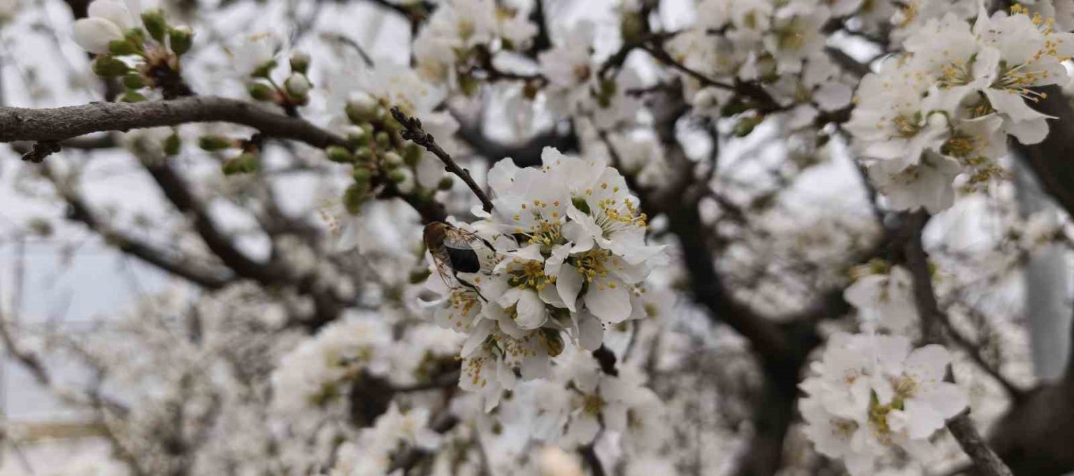 Mersin’in Silifke ilçesinde, örtü altında yetiştirilen ve döllenmesi doğal olarak arılar tarafından sağlanan erik ağaçları çiçek açtı.