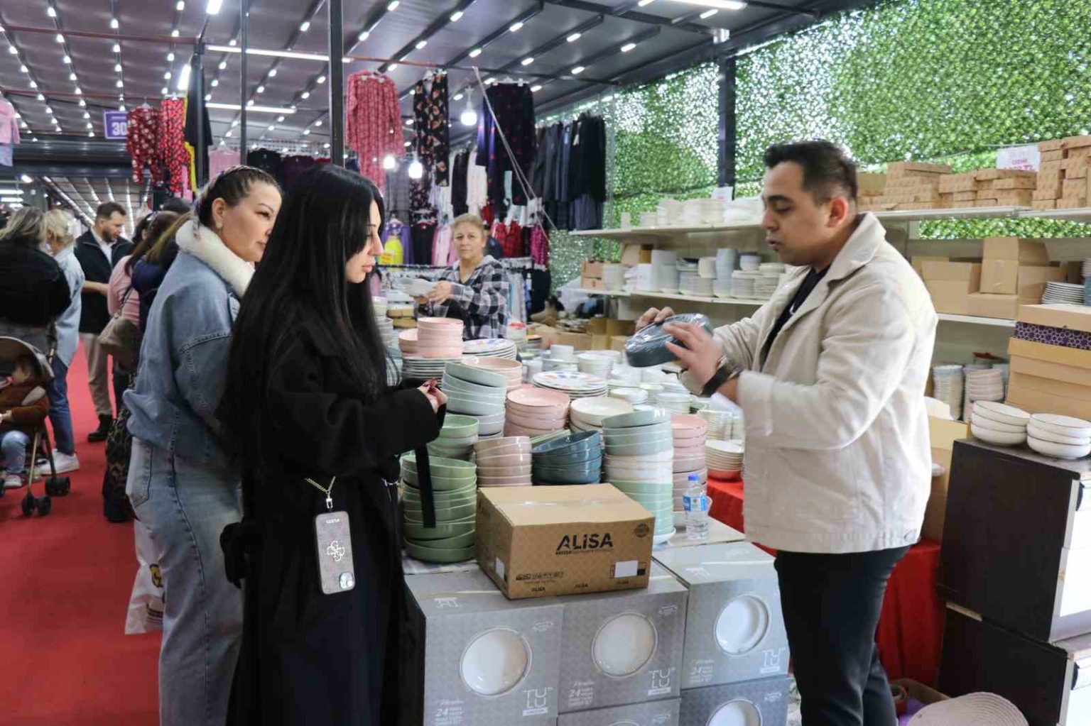 Fiyatların uygunluğuna dikkat çeken Fatma Demdi, “Bugün buraya alışveriş yapmaya arkadaşlarımla birlikte geldik. Ürün ve fiyat çeşitliliği konusunda çok memnun kaldım. Zücaciyeden giyime kadar, iç giyim, takı her şey mevcut. Hepsini de baktık çok güzel ürünler var. Ayrıca dünya markalarını da burada uygun fiyata bulmak mümkün. Hepsini inceledik baktık kumaş kaliteleri ve ürün kaliteleri çok iyi çok beğendik. Fiyat açısından da ürünler çok uygun olduğu için elime aldığımızı bırakmak istemiyoruz, hemen satın alıyoruz. O kadar çok alışveriş yaptık ki param kalmadı, babamı aramak zorunda kaldım. Babamdan para isteyip tekrar alışverişe devam ediyorum” ifadelerini kullandı.
