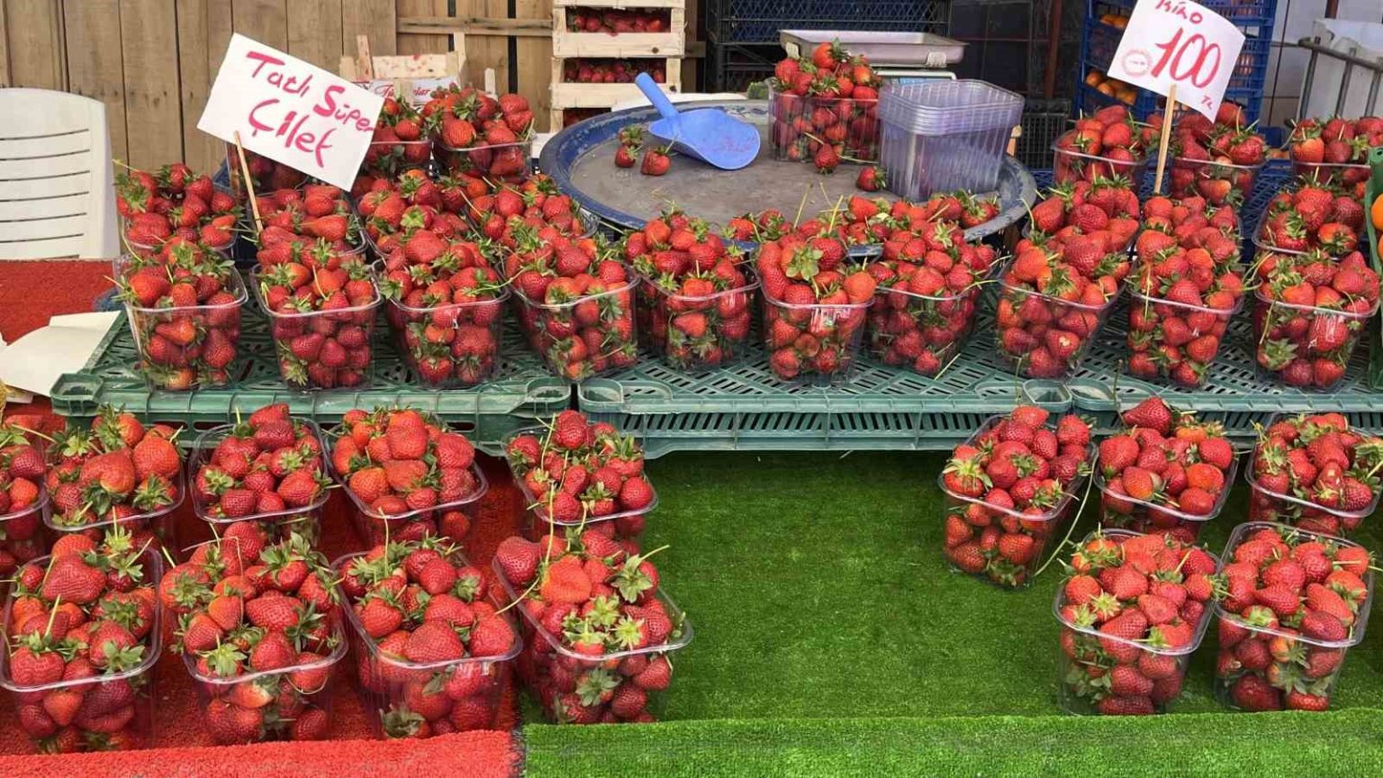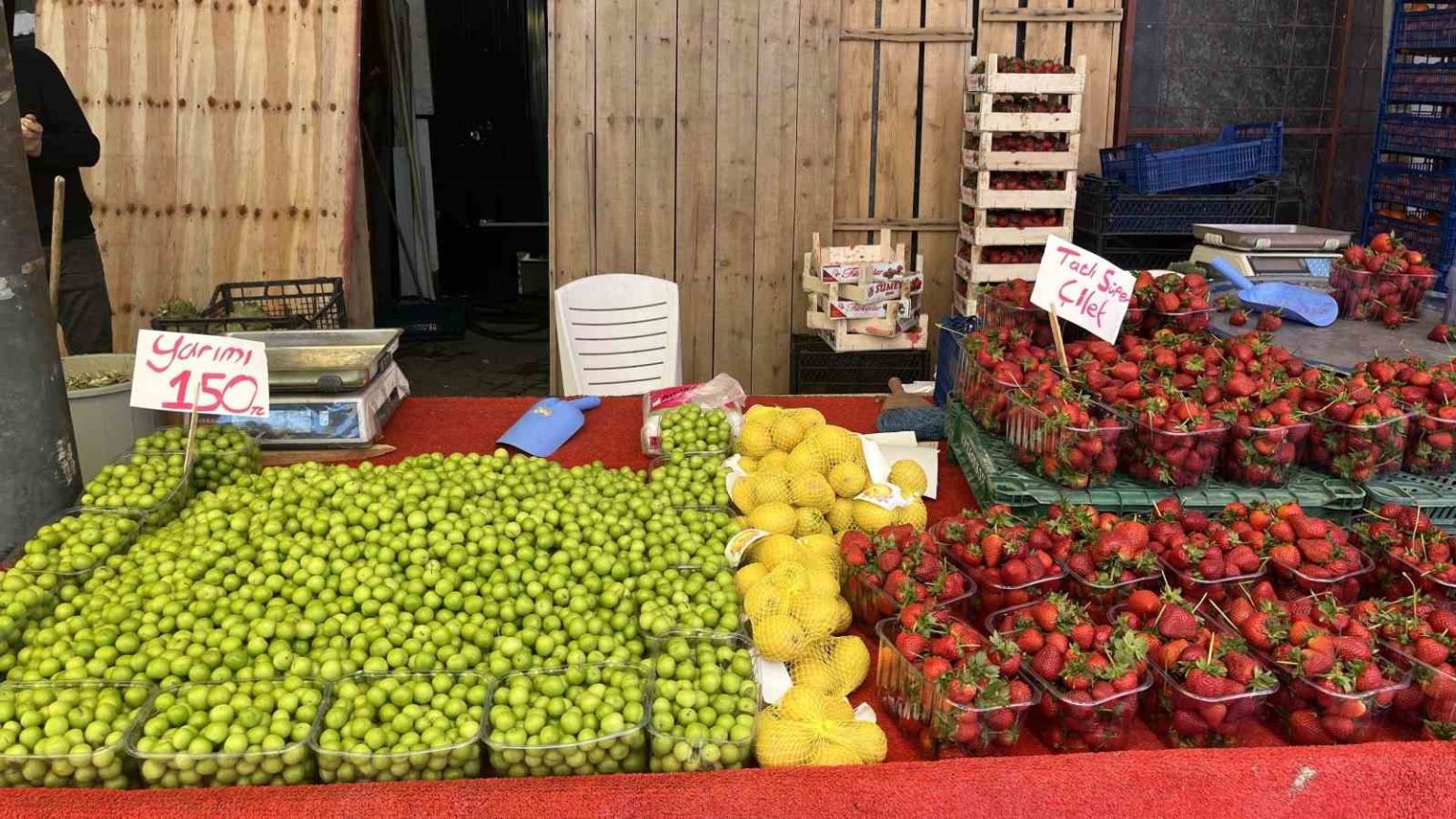 İhsaniye Mahallesi’nde kurulan Pazartesi Pazarı’nda çilek, erik, karpuz ve kavun gibi yaz meyveleri tezgahlarda yer aldı. Vatandaşların bahar aylarının gözde ürünü olan çağlaya ilgisi azalırken, yaz meyvelerine yöneldiği gözlendi. Yaz meyvelerinin piyasaya çıkmasıyla birlikte çağla fiyatlarında da düşüş yaşandı. Daha önce 300-400 lira bandında olan çağla, 100-150 lira seviyelerine geriledi. Kayısı çağlasının ise 50 ile 100 lira arasında satıldığı görüldü. Tezgahlarda yer alan yaz meyvelerinden çilek yaklaşık 100 liradan, erik ise 200 liradan satışa sunuldu.