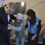 Bitlis Sağlık Müdürü Doç. Dr. Şaban Ergene beraberinde İl Sağlık Müdür Yardımcısı Seda Yılmazer ve 4 uzman doktorla birlikte Sarıkum köyüne giderek, 9 çocuğu ve 200’e yakın torunu bulunan 101 yaşındaki Hamide Allahverdi’yi ziyaret etti. Ekiplerin sağlık kontrollerini yaptığı hasta ile birlikte Bitlis ve ilçelerinden 3 bine yakın hastaya evde bakım hizmeti verildiğini belirten Sağlık Müdürü Ergene, 80 yaş ve üzeri hastaneye gelemeyen hastalara evde bakım hizmeti verdikleri söyledi. İl Sağlık Müdürü Doç. Dr. Şaban Ergene, “Tatvan ilçemizde Sarıkum yerleşkemizde 101 yaşında koca çınarımız annemize geldik. Tabii yalnız başımıza gelmedik. Buraya gerontoloğumuzla evde bakım ekibimizle, fizyoterapistimizle, diyetisyenimizle beraber yaşlı annemize yerinde poliklinik hizmetini veriyoruz. Bakanlığımızın yapmış olduğu bu güzel uygulamaya sahada bizler de şahit olduk. Annemiz bahsettiğimiz gibi 101 yaşında. Evde bakıma kayıtlı. Tabii yaşlılığına bağlı olan hastalıklarımız mevcut ama bunlara inşallah ekibimizle beraber güzel bir şekilde koordinasyonla müdahale ettik” dedi.