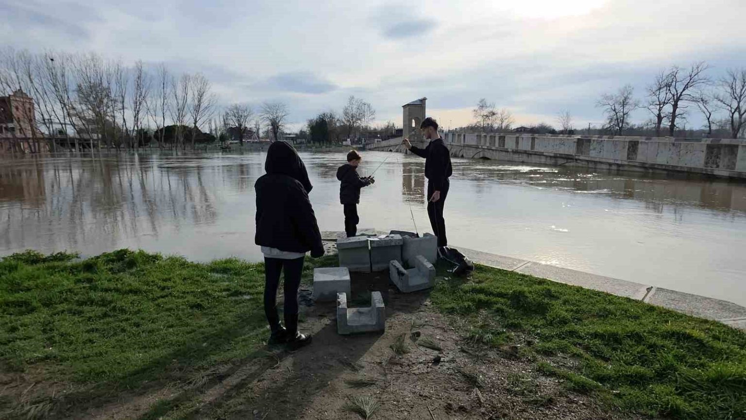 Edirne’de son günlerde etkili olan yağışlar ve yükselen nehir suları nedeniyle tarlaların büyük bölümü su altında kaldı. Bölgede yaşayan 11 yaşındaki Arda Biçer ise dayısıyla birlikte taşkın sularının yükseldiği alana balık tutmak için geldi.