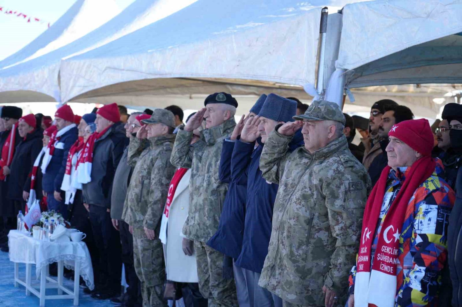 Aile ve Sosyal Hizmetler Bakanı Mahinur Özdemir Göktaş, törende yaptığı konuşmada Sarıkamış Harekâtı’nın, vatan sevgisinin en çetin imtihanlarından birisi olduğunu ifade ederek, “Ecdadımızın zor zamanlarda nasıl kenetlendiğini ve vatanı için hangi bedelleri göze aldığını gösteren tarihî bir duruştur. Ben bu vesileyle, 111 yıl önce, istiklâl ve hürriyet uğruna canını fedan eden kahraman şehitlerimizi rahmetle ve minnetle yâd ediyorum. Bu topraklar, fedakârlığın sessiz tanığıdır. Anadolu’nun bin yılı aşan bu tanıklık, Malazgirt’te açılan kapıyla başladı. İstanbul’un fethiyle bir medeniyet ufkuna dönüştü. Ecdadımız vatan denildiğinde asla geri adım atmadı. Her dönemi, yeni bir destanla taçlandırdı. Alparslan’ın Malazgirt zaferi, tarihe düşülen büyük destanlardan biridir. Gazi Osman Paşa’nın Plevne’de imkânsızı mümkün kılan direnişi de. Çanakkale’de “geçilmez” hükmünü tarihe yazdıran Gazi Mustafa Kemal Atatürk ve Mehmetçiğin azmi de Yurdun dört bir yanı kuşatıldığında verilen Milli Mücadele, bir milletin hürriyetini dünyaya ilan ettiği diriliş destanıdır. 15 Temmuz gecesi tankların önüne yürüyen cesaret de Sarıkamış, bu destanlar zincirinin bedeli en ağır halkalarından biridir. Soğuğa, yokluğa ve imkânsıza rağmen vatan için şehadeti göze alanların mücadelesidir” dedi.