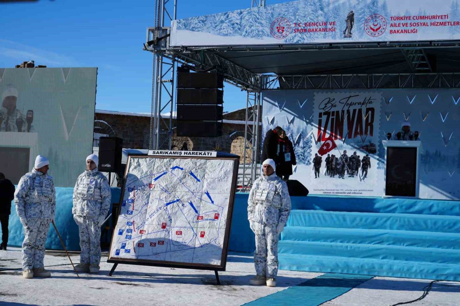 Sarıkamış Harekatı’nın 111. yılı anma etkinlikleri çerçevesinde Ay Yıldız Tören Alanı’nda düzenlenen anma töreninde; Aile ve Sosyal Hizmetler Bakanı Mahinur Özdemir Göktaş ile Gençlik ve Spor Bakanı Osman Aşkın Bak birer konuşma yaptı.