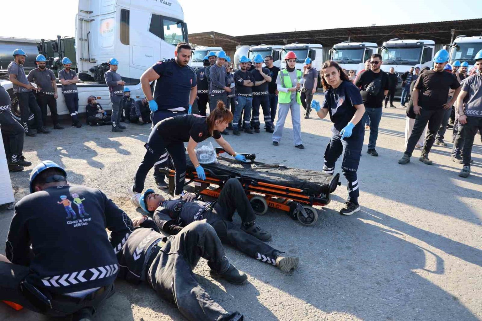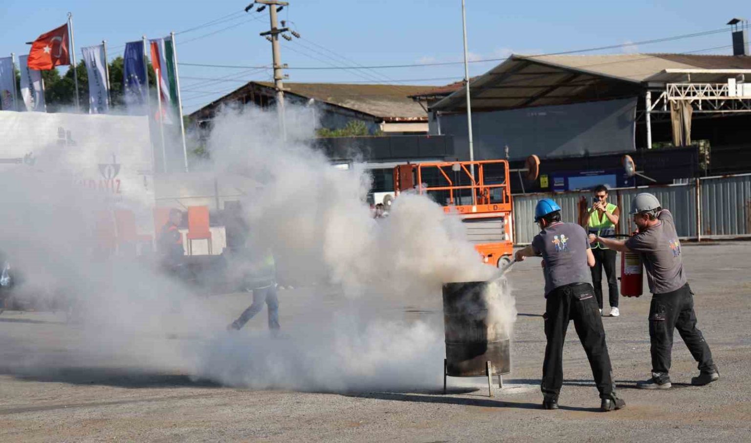 Tatbikatta yangın çeşitleri ve müdahale sistemleri, uzuv kaybında yapılması gerekenler konusunda çeşitli bilgiler aktarılırken herkesin iş güvenliği kurallarına azami ölçüde uyması istendi.
