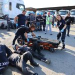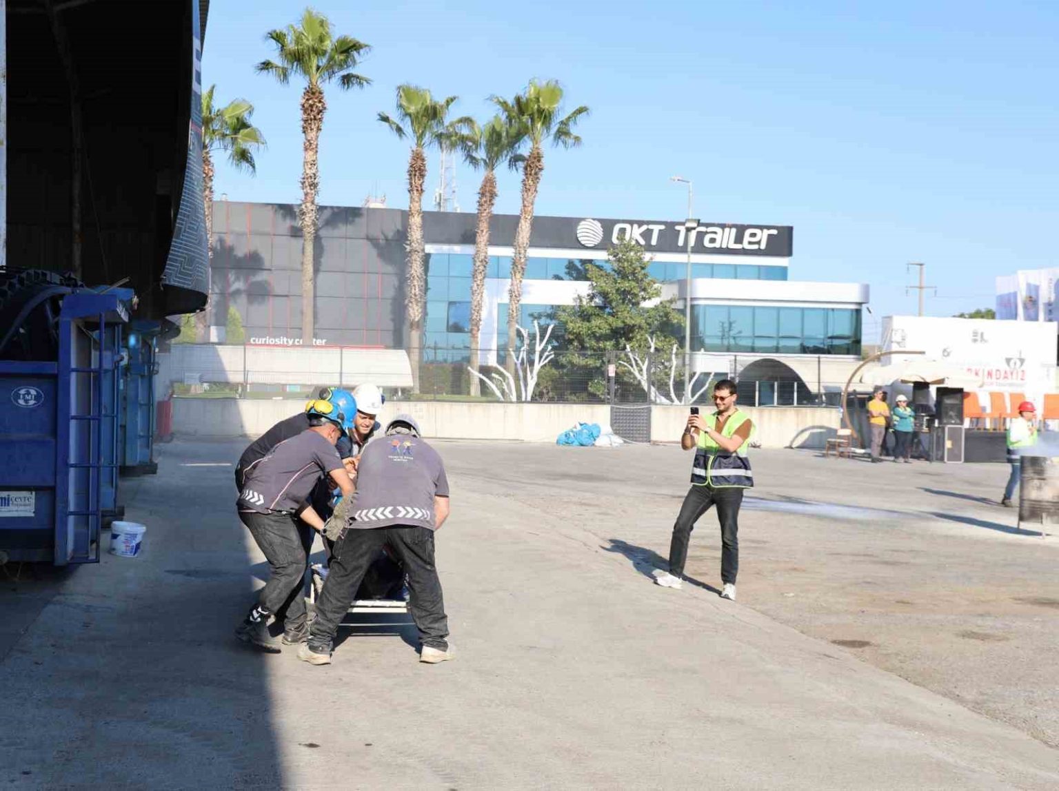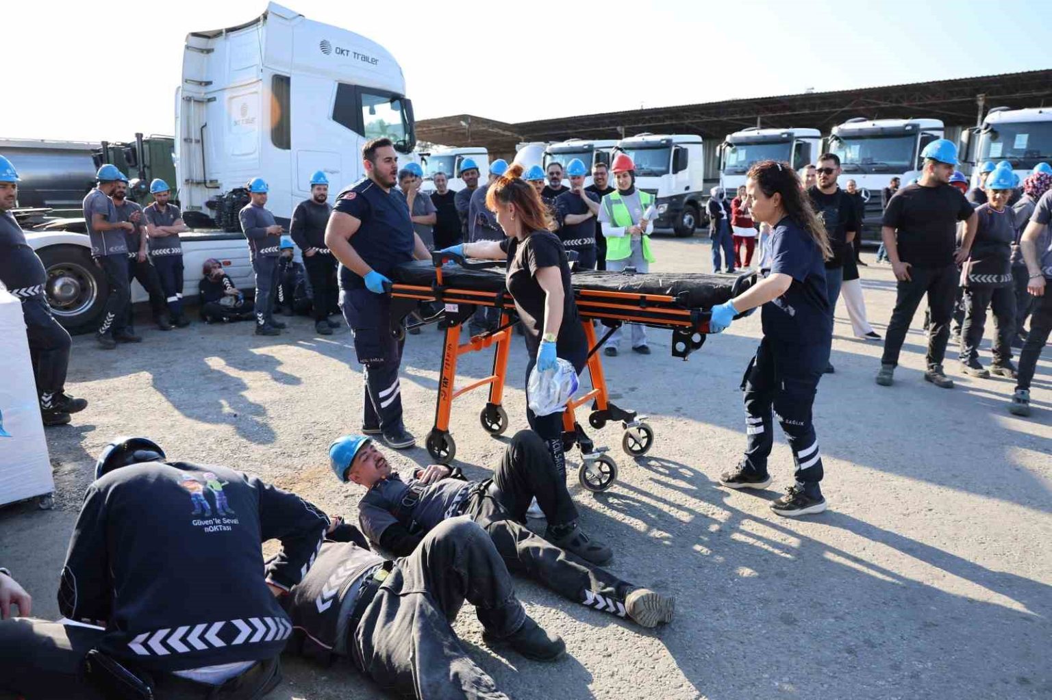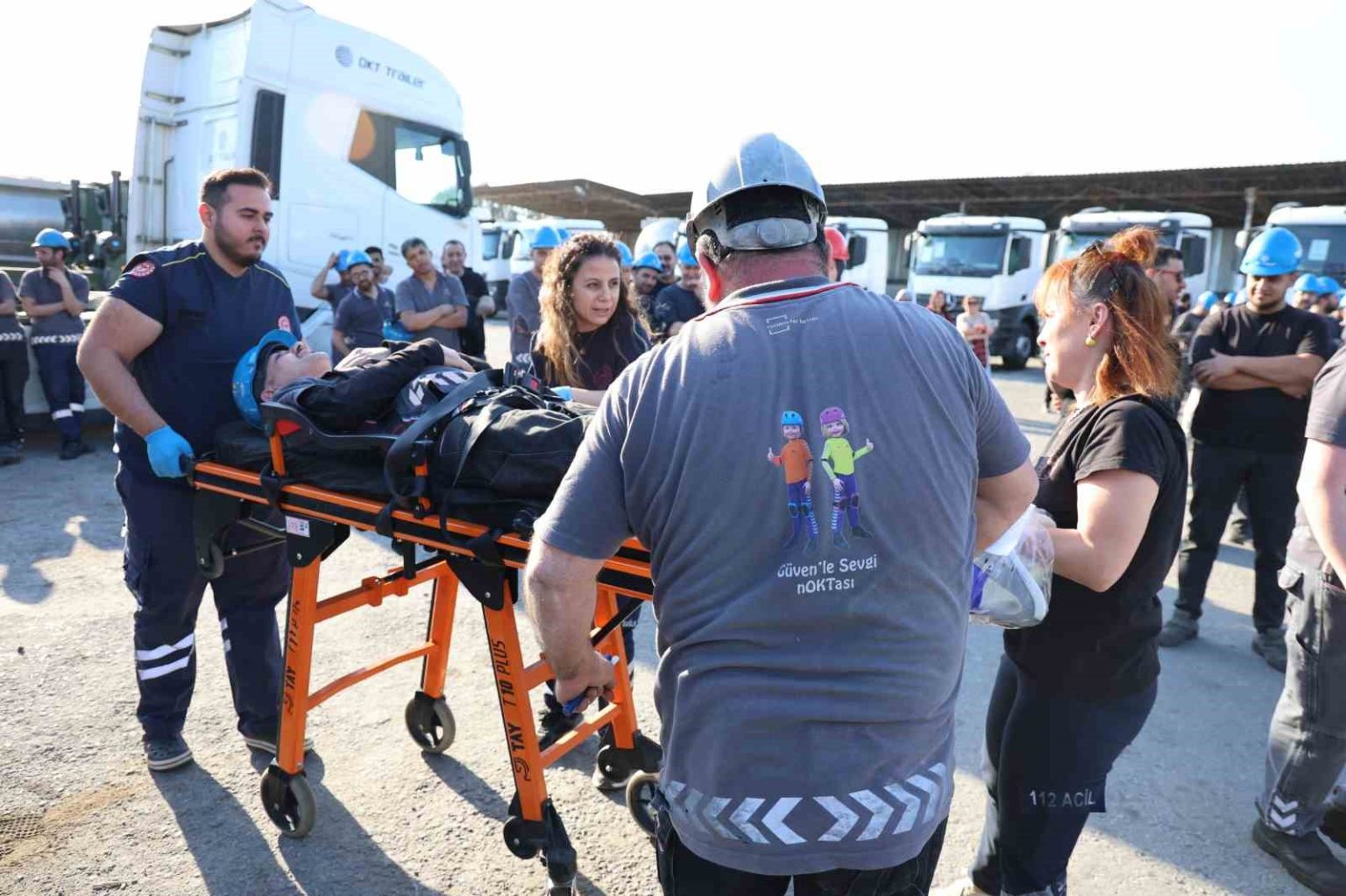 Aydın’da faaliyetlerini sürdüren ve yüzlerce kişinin çalıştığı OKT Trailer’de yangın ve iş kazası tatbikatı gerçekleştirildi. Tatbikatta senaryo gereği ayağı kırılan bir işçinin 112 ekiplerince kurtarıldığı sırada “kırık bacağıma dokunmayın, canım çok yanıyor” diye bağırması bir anda gerçek sanıldı. Tatbikatta işçinin oldukça gerçekçi rol yapması herkesi gülümsetti.
