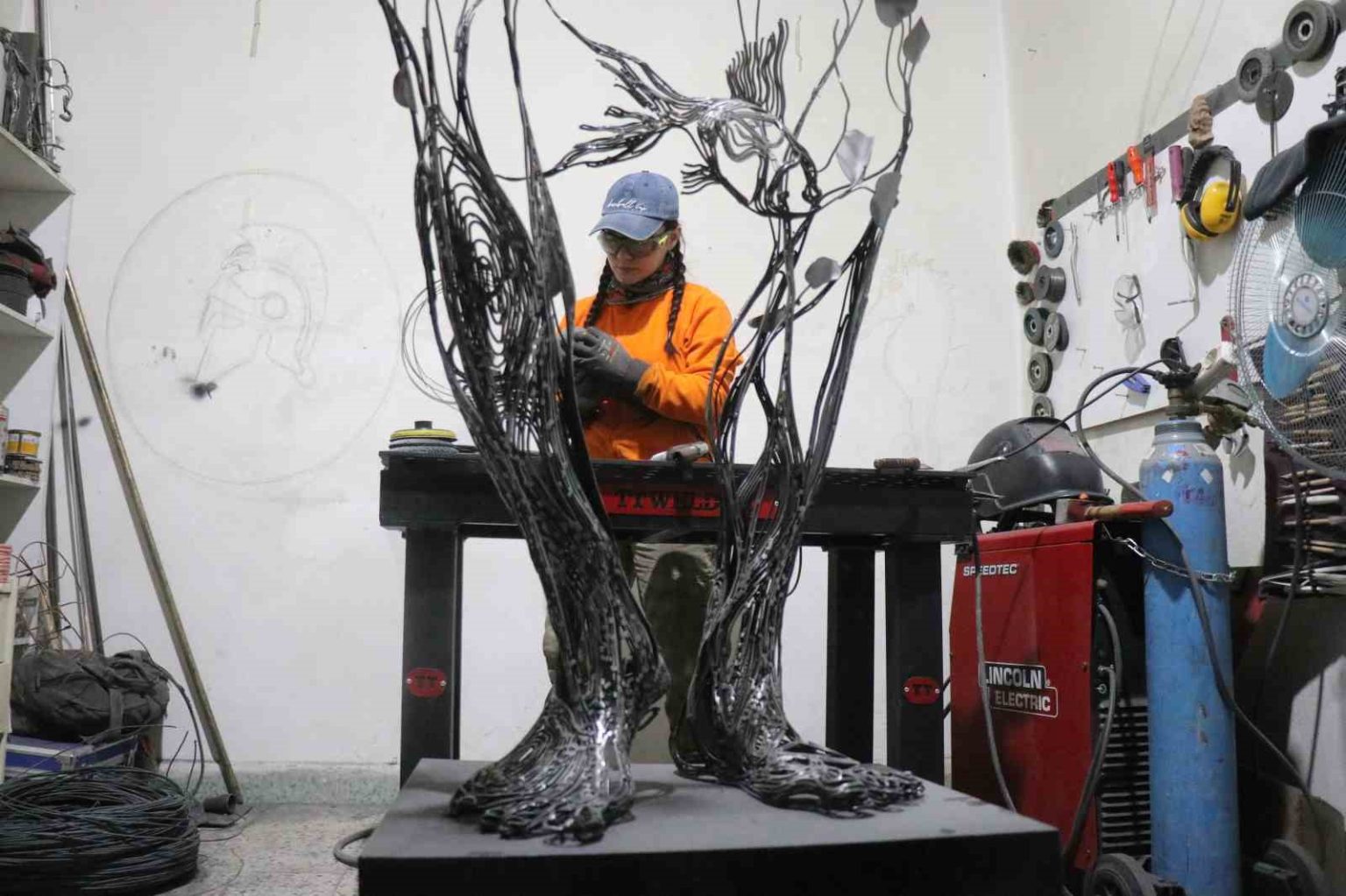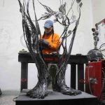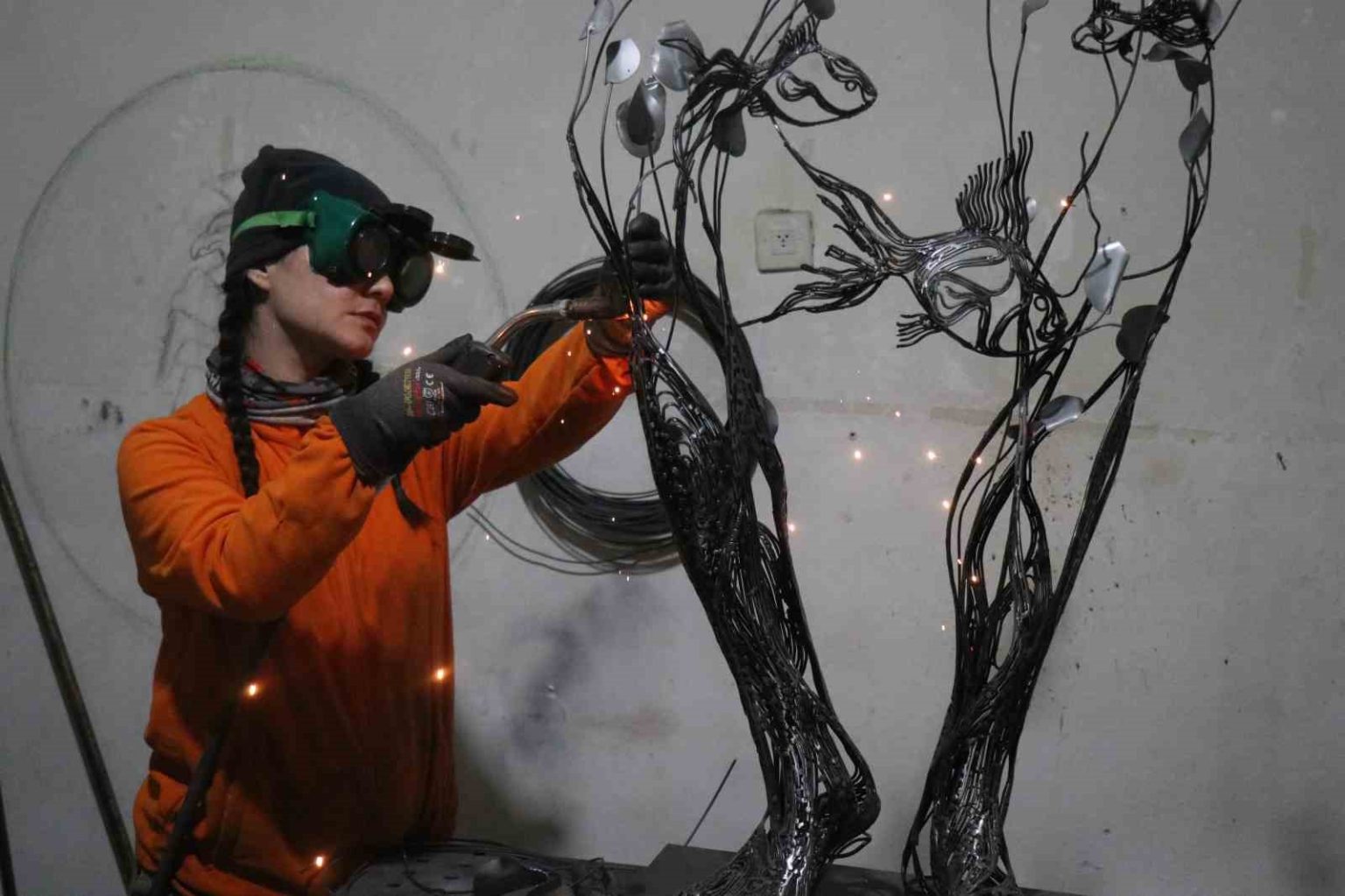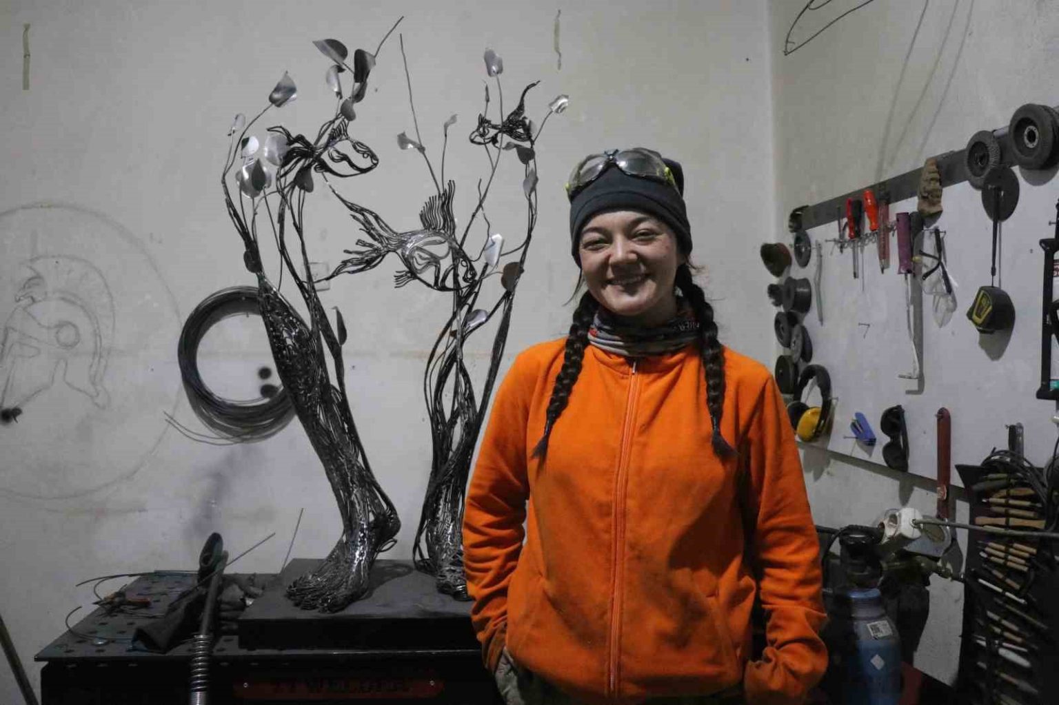 İstanbul’daki hayatını bırakarak 2,5 yıl önce Sakarya’nın Akyazı ilçesine yerleşen 30 yaşındaki sanatçı Gülfidan Soyuğur, 12 metrekarelik küçük atölyesinde dev eserlere imza atıyor. Bir zamanlar dokunmaya bile korktuğu metal malzemeyi estetik figürlere dönüştüren Soyuğur’un eserleri, Türkiye’nin yanı sıra Kıbrıs ve Almanya gibi ülkelerde sergileniyor.