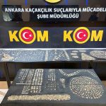 Ankara Kaçakçılık Suçlarıyla Mücadele Şube Müdürlüğünce yürütülen çalışmalar kapsamında, ülke genelindeki sit alanlarında gerçekleştirilen kaçak kazılar sonucu elde edilen tarihi eserlerin piyasaya sürülerek yurtdışına kaçırılmaya çalışıldığı bilgisi üzerine çalışma başlatıldığı bildirildi. Yaklaşık 6 ay süren takip sonucunda, şüpheli şahsın kaçak kazılarda elde ettiği tarihi eserleri Sincan ilçesinde bulunan hobi bahçesinde toprağa gömdüğü edinilen bilgiler arasında yer aldı. 30 Mart tarihinde şüphelinin ikameti ve hobi bahçesine yönelik düzenlenen operasyonda, 2863 sayılı Kültür ve Tabiat Varlıklarını Koruma Kanunu’na muhalefet suçundan şüpheli hakkında adli işlem başlatıldığı açıklandı.