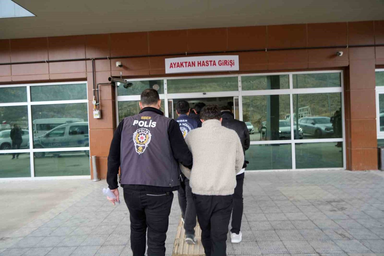 Operasyon kapsamında 7 şüphelinin ikametinde arama yapılırken, F.A., K.M., M.A., M.K. ve B.D. isimli 5 şüpheli gözaltına alındı. Emniyetteki işlemleri tamamlanan şüpheliler, hastanede gerçekleştirilen sağlık kontrolünün ardından adliyeye sevk edildi. 1 şüphelinin yakalanmasına yönelik çalışmaların sürdüğü, 1 kişinin ise başka bir suçtan cezaevinde bulunduğu öğrenildi.