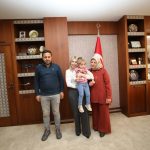 Rektör Prof. Dr. Özlenen Özkan, Özlenen bebek ve ailesi ile hatıra fotoğrafı çektirdikten sonra misafirlerini uğurladı.