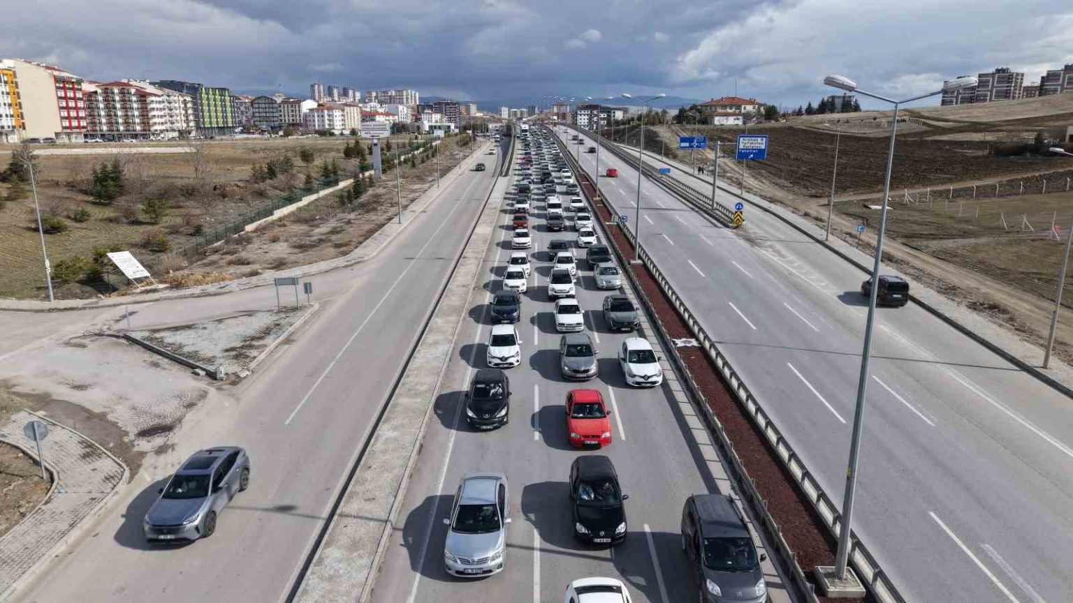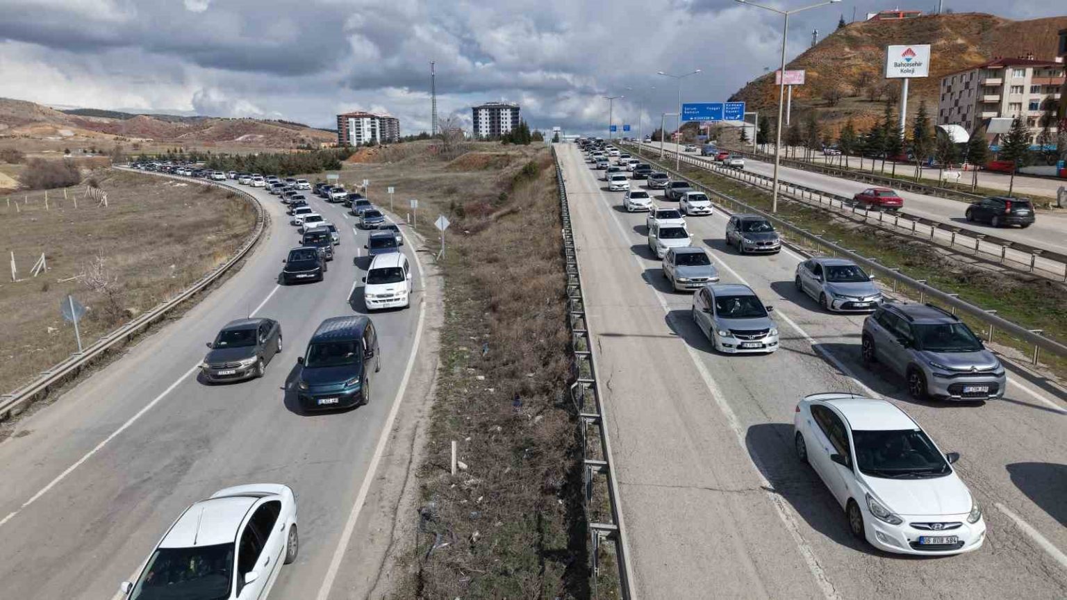 Ulaşımda 43 ilin geçiş noktasında bulunan “kilit kavşak” Kırıkkale’de, Ramazan Bayramı’nın son gününde trafik yoğunluğu yaşanıyor. Tatilcilerin dönüş yolculuğuna geçmesiyle oluşan kilometrelerce araç trafiği havadan görüntülendi.