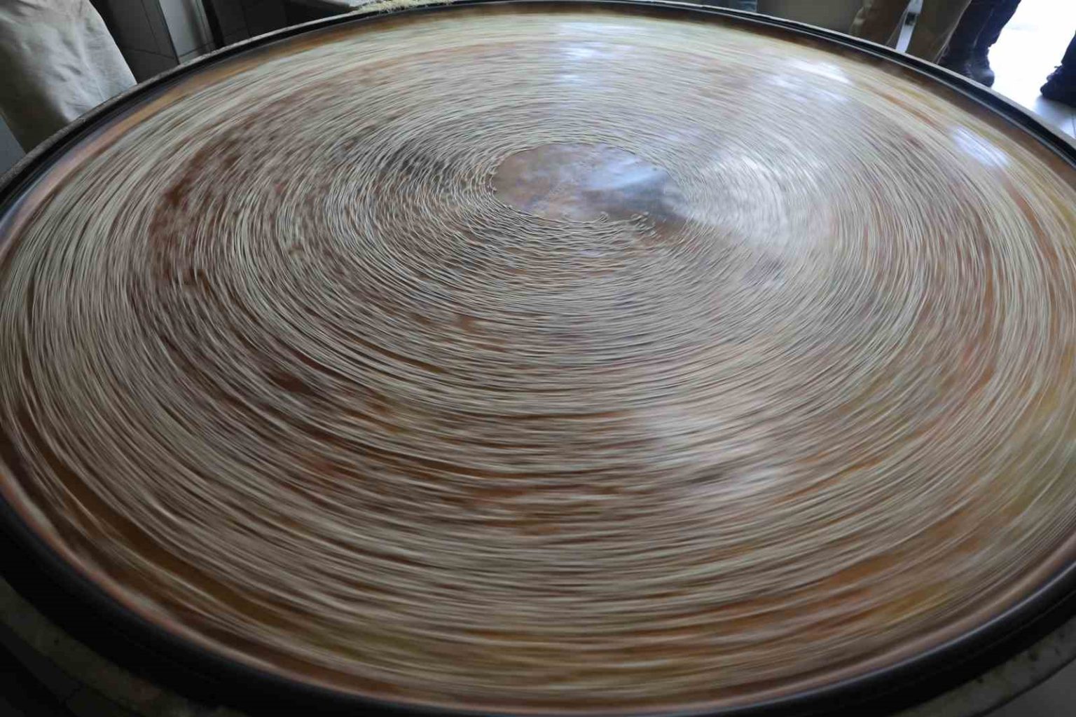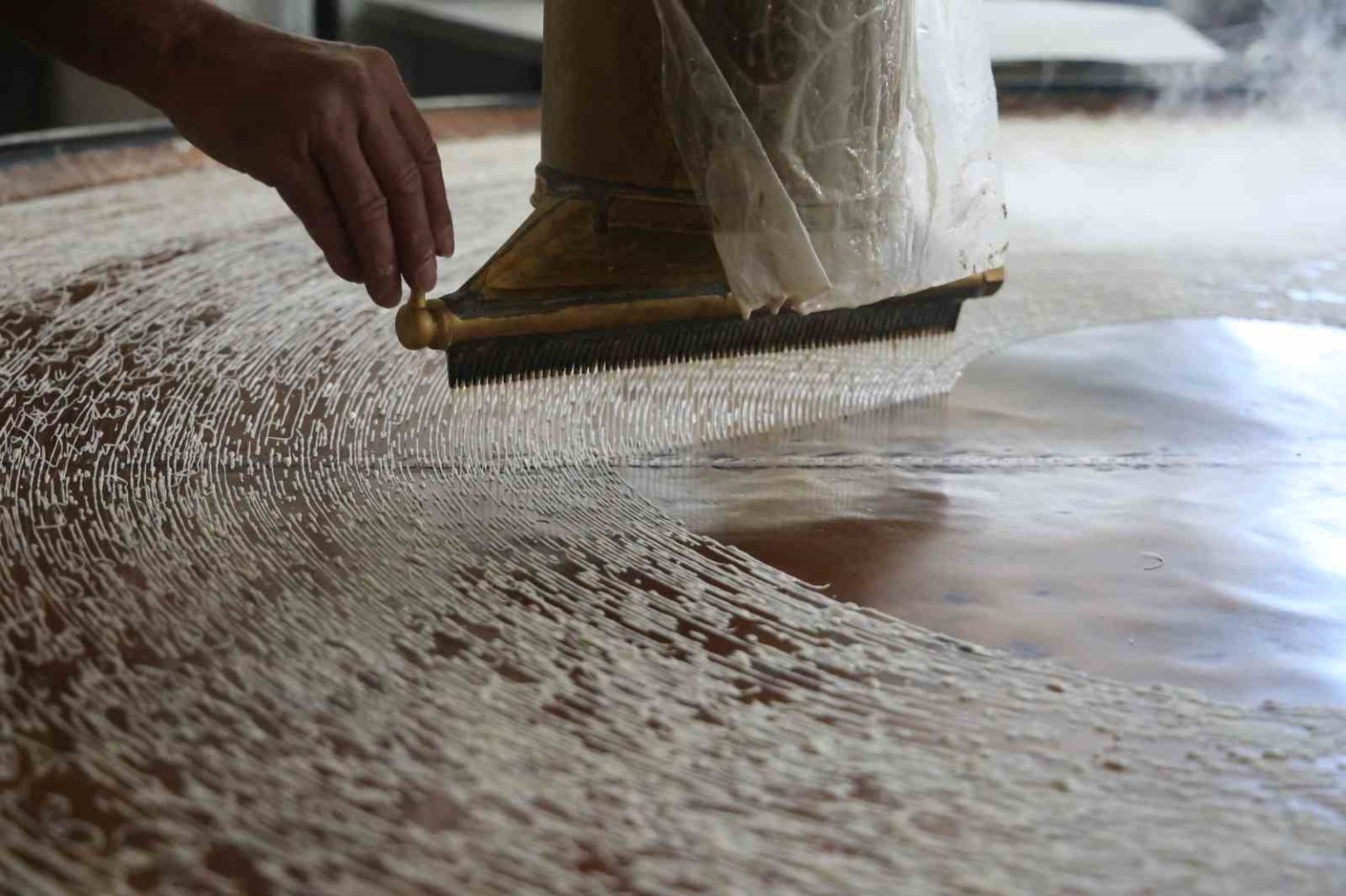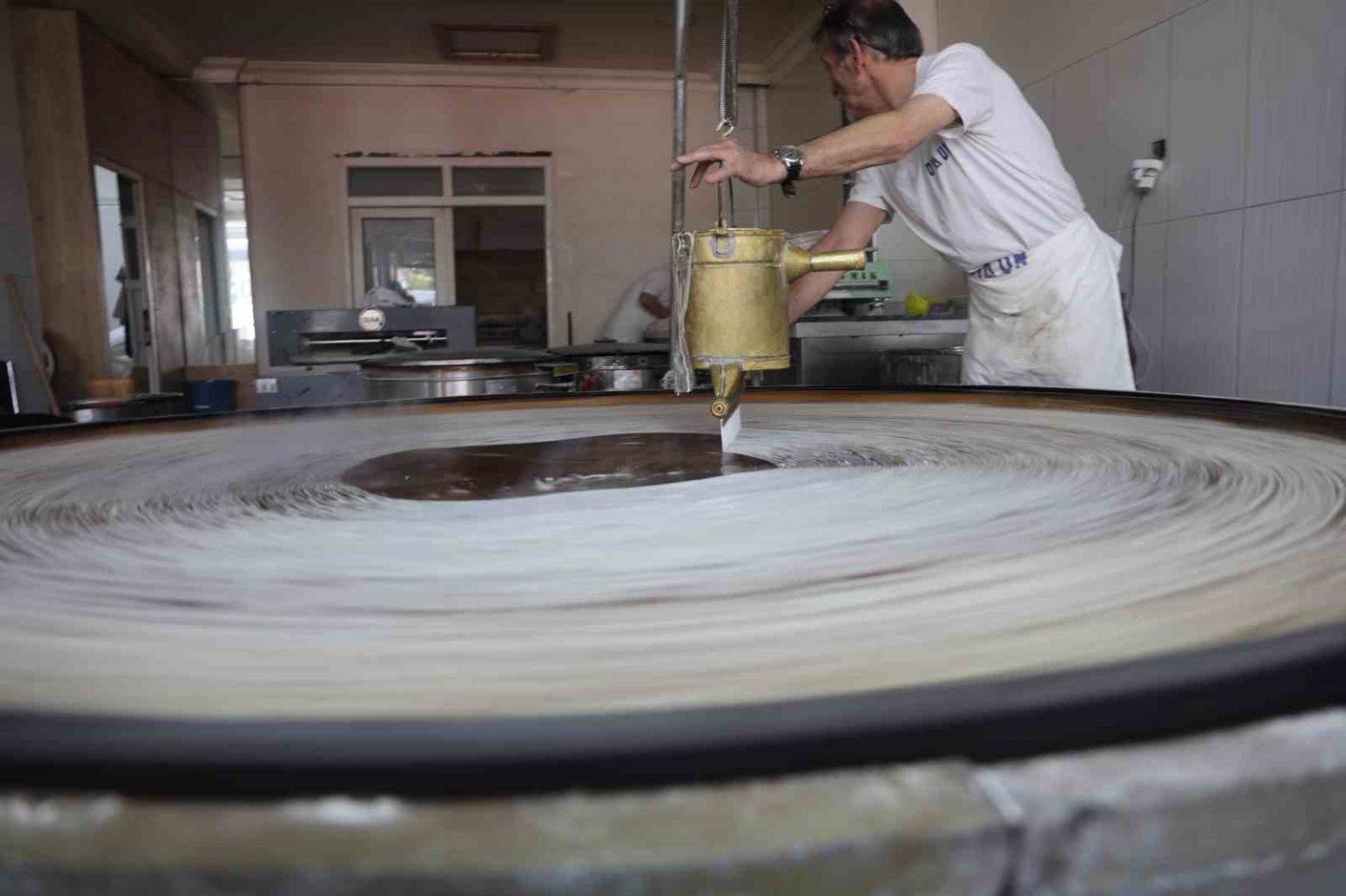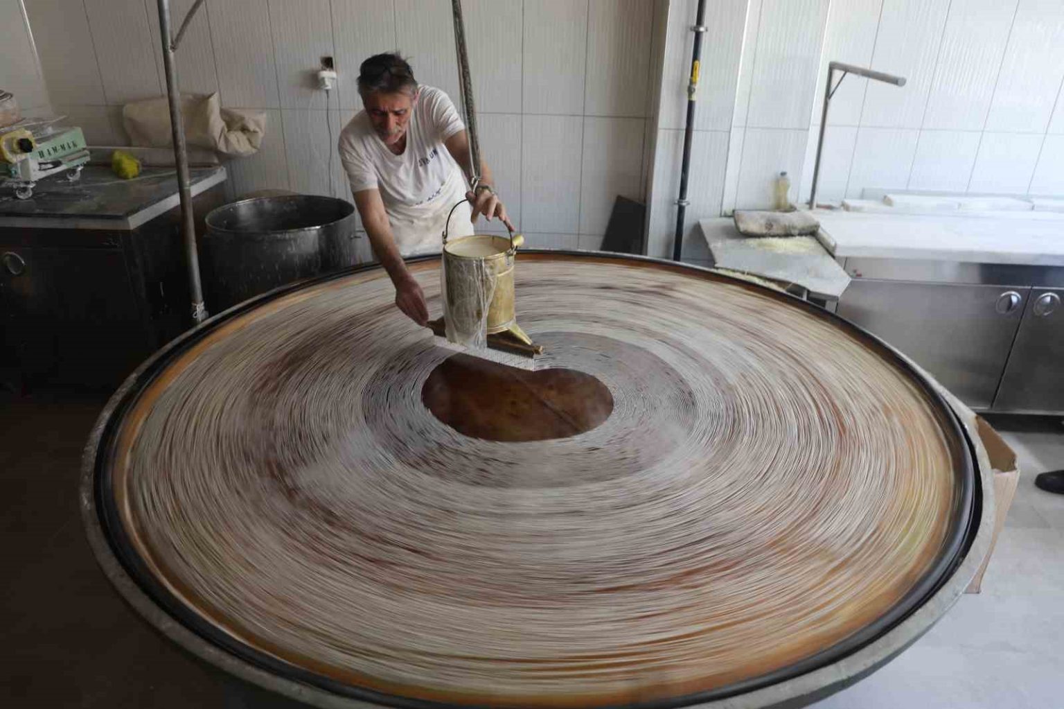 Ramazan’ın bereketiyle çalışmaya devam ettiklerini söyleyen kadayıf ustası Hakan Güvez, “Elimizden geldiğince işimizin başındayız, çalışmaya, dökmeye devam. Bizim malzememiz un ve su, başka hiçbir katkı maddemiz yok. Tamamen doğaldır, içinde hiçbir katlı maddesi olmaz. Bunlar dövme bakırdır. Yani evdeki sizin kullandığınız bakır sinilerden değil bunlar. Bu bakır ocağı 45 sene önce Kahramanmaraş’ta yaptırdık” dedi.