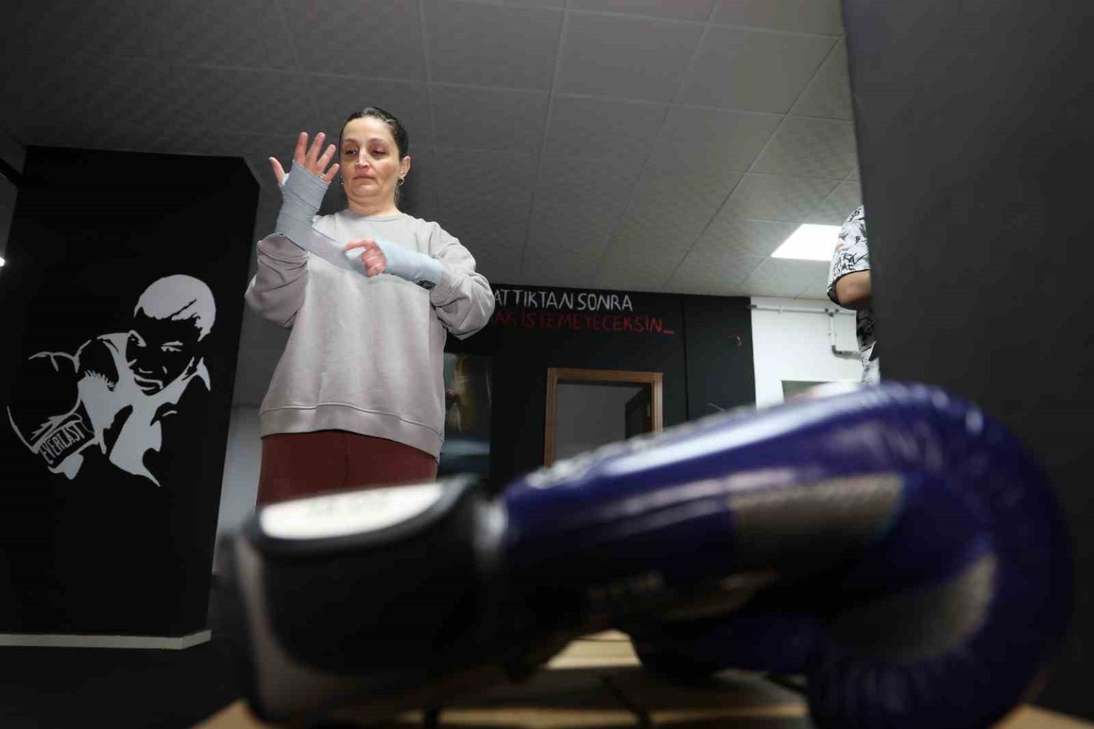 Boks sporunun hayatına kattığı fiziksel ve ruhsal kazanımları anlatan Anne Aslı Karakaş, “Çocuklarımla birlikte boksa başladım. Aslında bu süreç ilk olarak çocuklarımla başladı. Onların hem zihinsel hem de bedensel olarak güçlü, disiplinli ve özgüvenli bireyler olmalarını istediğim için bu kursa başlamalarını teşvik ettim. Kursa geldikten sonra Hamza hocayla konuştum ve bu konuda fikirlerini aldım. Ardından ben de başlamaya karar verdim. Çocuklarımla birlikte vakit geçirmenin güzel olacağını düşündüm. Çalışıyor olmanın getirdiği yoğunluk içinde, bu sayede onlarla daha fazla zaman geçirebiliyordum. Bu bizim için bir bahane oldu, çocuklarla ortak bir alanımız oluştu ve birlikte vakit geçirmeye başladık. Aynı zamanda sağlık açısından da bana çok iyi geldi. Boyun fıtığım vardı ve boynumda ağrılar yaşıyordum. Devam ettikçe bu ağrıların geçtiğini fark ettim. Yani hem fiziksel hem de ruhsal olarak çocuklarımla birlikte bana iyi geldiğini gördüm ve bu yüzden devam ediyorum. Başlangıçta kimseyle paylaşmadım çünkü kendi kararımı kendim vermek istedim. Sınırlarımı aşmak istedim; kendime sınır koymamaya karar verdim ve kimsenin bu sınırları benim yerime çizmesine izin vermedim. Azimle devam ettim, umarım başarabilirim. Boks dışarıdan sert bir spor olarak görülebilir ama inanın, bu süreçte kendi sınırlarımı aştım ve önyargılarımı yendim. Biz burada sadece yumruk atmıyoruz; önyargılarımızı ve korkularımızı yeniyoruz. Bu spor hem ruhumuza hem de bedenimize iyi geliyor. Bütün annelere tavsiye ederim. İnsan bir şeyi başardıkça duruşu değişiyor. Ben yılmadıkça çocuklarımın da yılmadığını gördüm. Bu yüzden bütün annelere cesur olmalarını tavsiye ediyorum. Muhammed Ali’nin dediği gibi, imkansız, büyük hayaller kurmaktan çekinen insanların uydurduğu bir kelimedir” dedi.