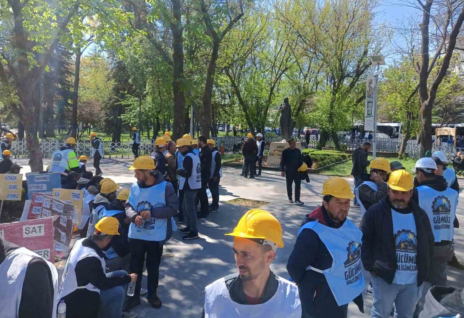 Geçmişten bugüne alacakları konusunda problemler yaşandığını dile getiren işçilerden Nevzat Kuyumcu, “2016’dan 2022’ye kadar TMSF altında çalıştık. Alacaklarımız ödenmedi. Ücretlerimiz sıfırlanmadı. 2022 sonunda da Yıldızlar Holding’in şirketi olan Doruk Maden’e transfer olduk. Alacaklarımızın ödenmemesi konusunda büyük sıkıntılar çektik. Emekli olanların tazminatları ödenmemeye başladı. Daha sonra sendika, yetkili biri görevlendirilince alacaklarımızın ödeneceğini söyledi. Yetkili gelince yine alamadık. En sonunda biz de bu yürüyüş kararını aldık. Buraya gelmeden önce işverenimiz eylemi durdurmamız karşılığında maaşların ödeneceğini belirtti. Biz maaş için yürümedik buraya. Kaybolan bütün haklarımızı almak için geldik. Bir iki maaşı yatan arkadaşlarımız olmuş. Eylemi sonlandırmaları istenmiş. Alacağımız sadece iki maaş olsaydı Eskişehir’den buraya yürümezdik. Eylemimiz kaldığı yerden devam ediyor. Pazartesi günü Enerji Bakanlığına yürüyüş yapmayı planlıyoruz. Haklarımızı almadan dönmeyeceğiz. Herkes yemin etti. Açlık grevinde olan arkadaşlarımız var. Bir tanesi evine gitmek zorunda kaldı. Bayılanlar, fenalaşanlar oldu. Herkes bize destek veriyor. Ankara halkına teşekkür ederiz” dedi.