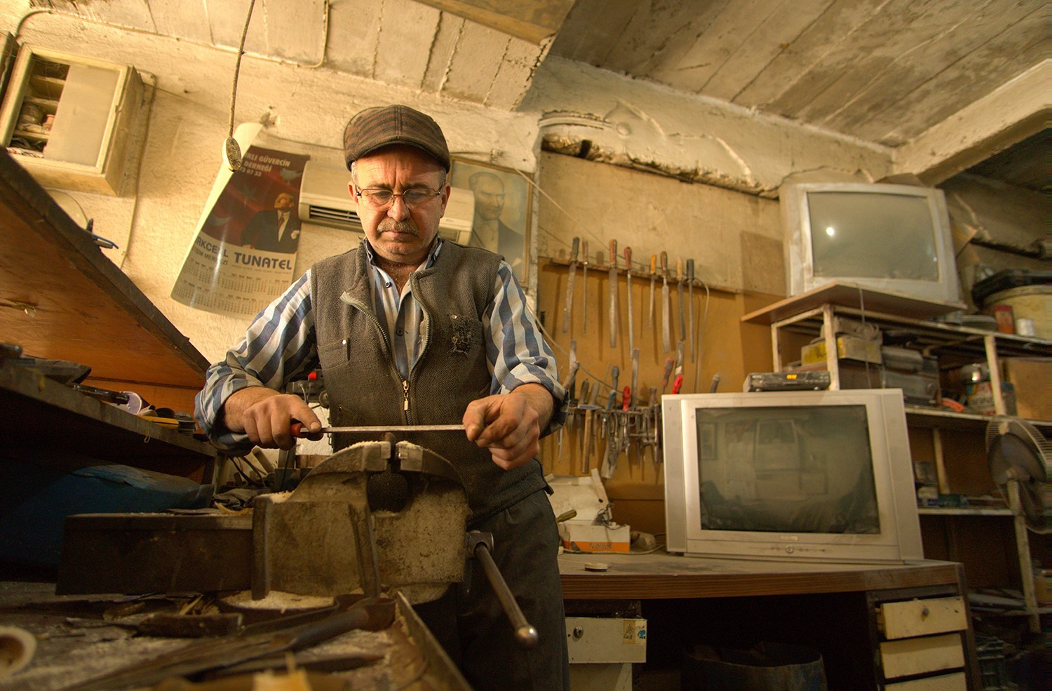 Burhaniye’de ki mütevazı atölyesinde, kor ateşin başında ter dökmeye devam eden Tanju Pulat, bir taraftan mesleğini yaparken diğer taraftan da mirasını devredecek bir el arıyor.