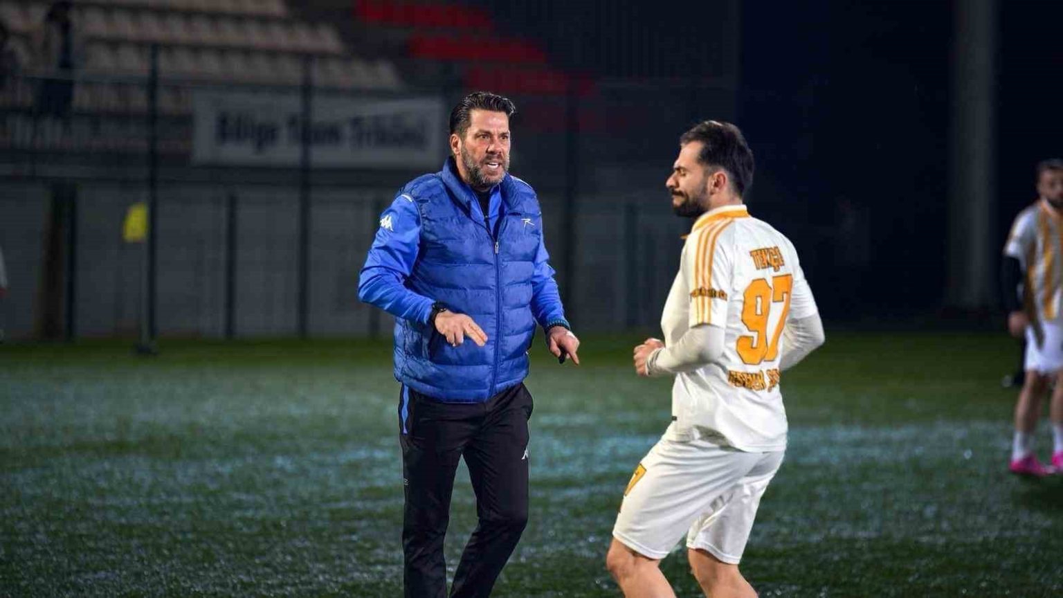Maç öncesi konuşan spiker Emre Tilev, “Gerçekten çok değerli bir organizasyon ve bu organizasyonun içinde olmak çok kıymetli. Hele ki iki yıldır kıymetli hocam Fırat Aydınus ile beraber oluyoruz. Hem anı yaşıyoruz hem anı paylaşıyoruz. Büyük üstad Şenol Güneş’in dediği gibi ‘Önemli olan neye sahip olduğun değil, sahip olduklarını kimlerle paylaştığındır’ Ben burada kıymetli arkadaşlarla bu organizasyonu paylaşmaktan büyük keyif alıyorum. Keyif alalım. Eğlenelim. Gülelim. Futbol temaşa zevki değil mi? Sonuçta biz de o zevke elimizi verelim. El ele tutuşup bugün güzel bir şekilde maçın coşkusuna ortak olalım. Spor yapan her zaman kazanır. Ben kaybeden bir spor yapan ile hayatım boyunca karşılaşmadım. Bu bağlamda spor yapmak çok değerli ve Tevfik Başkan da bu konuda çok değerli hamleler yapıyor. Harika bir tesis Futbol Gelişim Merkezi kurulmuş. Geçen yıl biz daha farklı bir noktadan anlatımı gerçekleştirdik ve sunumu yaptık. Bugün baktığımızda mükemmel bir tesis. Bunlar çok değerli şeyler. Biz nesillere eğer bunu aktarabiliyorsak ve sporun o birleştirici, ortak değerlere sahip çıkıcı ruhunu sunabiliyorsak ve en önemlisi de çocukları bu sanal atmosferden biraz olsun uzaklaştırabiliyorsak ne mutlu bize. Ben bütün velilerin çocukların özellikle belli bir yaş kategorisine geldiğinde okulla spor arasında sıkıştıkları bir süreç yaşadıklarına tanıklık ediyorum. O sıkışmışlığı ortadan yine sporla atacaklarının vurgusunu yapıyorum ve çocuklar mutlaka spor yapsın diyorum” dedi.
