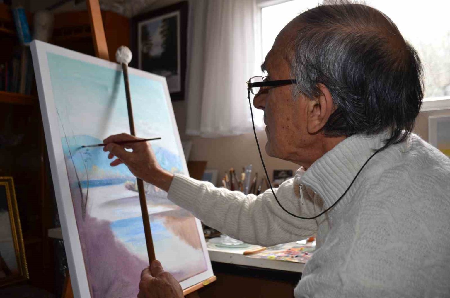 Çocukken yokluktan arkadaşlarından aldığı kağıt parçalarına resim yapan Necmi Öztürk’ün resim tuvali 55 yıldır en büyük tutkusu oldu.