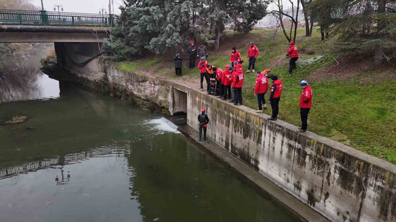 Eskişehir’de 6 gün önce kaybolan Türkçe öğretmeni Tuncay Arslan’ı arama çalışmaları devam ediyor. Öğretmenin son görüldüğü yer olan Porsuk Çayı’nın Gökmeydan Mahallesi kısmında Eskişehir İl Afet Ve Acil Durum Müdürlüğü’nden 9, Odunpazarı Belediyesi Arama Kurtarma Ekibi’nden (OBAK) 5, Dorlion Arama Kurtarma’dan (DAK) 4, MEB Arama ve Kurtarma Birimi’nden (AKUB) 5, Şişecam’ın Acil Vaka Ekibi (SAVE) 4, itfaiyeden 6,Tepebaşı Arama Kurtarma (TAK) 5 ve Sivil Arama Kurtarma Derneği’nden (SARTEM) 2 çalışan olmak üzere toplam 40 kişilik ekiple aramalar, öğretmenin kaybolmasının 6’ıncı gününde devam etti. Havadan dron ve su da ise hem ekiplerin girmesi hemde botlarla yapılan aramalar sabah saatlerinde başladı. Ankara’dan ve Bursa’dan getirilen özel burunlu köpeklerin işaret ettiği yerde arama çalışmaları yoğunlaştı. Ekiplerin kıyı taraması da sürüyor. Tuncay Arslan’ın yakınlarının da çalışmaları yakından takip ettiği bölgede gözlendi. AFAD Eskişehir İl Müdürü Aslan Mehmet Coşkun çalışmaları sahada koordine edip yakından takip ediyor.