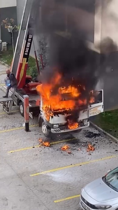 Bir ailenin eşyalarını 6. kattaki dairenin balkonuna çıkarmak için kullanılan eşya taşıma vincinin bağlı olduğu kamyonun kabin kısmında yangın çıktı. Olay kısa sürede site sakinleri arasında paniğe neden oldu. Site içerisinde yoğun duman oluştu. Alev alev yanan vinçli kamyona İlk müdahaleyi ellerinde su dolu damacanalarla çevredeki vatandaşlar yaptı, ardından itfaiye ekipleri yangını kontrol altına aldı. Olayda can kaybı yaşanmazken, kamyonun kabin kısmında maddi hasar meydana geldi. Yangının çıkış nedeni henüz netlik kazanmazken, olayla ilgili inceleme başlatıldı.