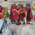 Çorum’da geçimini geri dönüştürülebilir atık malzemeleri toplayarak sağlayan 79 yaşındaki vatandaş, bulduğu Türk bayraklarını temizleyerek evinin duvarına asıyor.