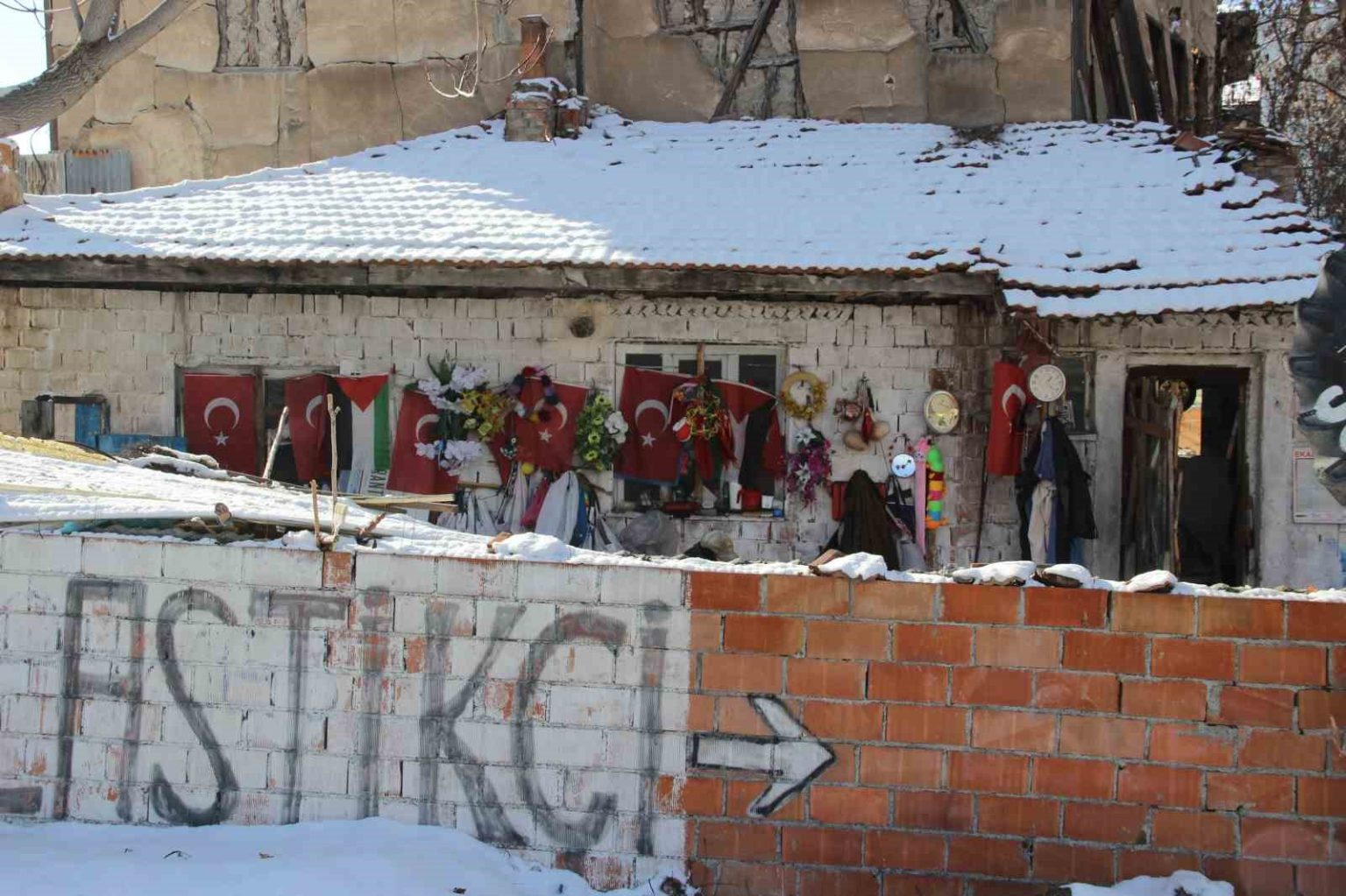Çorum’da geçimini geri dönüştürülebilir atık malzemeleri toplayarak sağlayan 79 yaşındaki vatandaş, bulduğu Türk bayraklarını temizleyerek evinin duvarına asıyor.