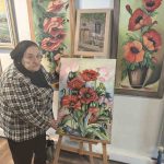 Her alanda tablo çizebildiğini söyleyen Nimet Gündoğdu, “Bütün eserlerde tablom var benim. Karışık olarak çalışmalar yapıyorum ve her tür resim yapabiliyorum. Bu sergiye 5 eserle katıldım. Eserimin bir tanesi Mustafa Kemal Atatürk’ü anlatıyor. 3 arkadaş yaptığımız resimlerimizi kapıya da koyduk. Diğer arkadaşlarımız da 5’er eserle katıldılar sergiye. Biz hepimiz Rıfat Hızlısoy’un öğrencileriyiz. Hocamız sağlık problemlerinden dolayı gelemedi. Biz müdürümüz Şükrü beye de ayrıca sevgi ve saygılarımızı sunuyoruz. Onun da bizde emeği çok. Allah razı olsun bizleri hiç yalnız bırakmıyor. Hep arkamızda destek oluyor. Bu durumda bütün arkadaşlarıma, müdürümüze ve emeği geçen herkese teşekkür ederiz. Ben bu sanatı 25 senedir yapıyorum. Hiç kimse evde oturmasın. Stres atmak, güzel vakit geçirmek bence değerli bir şey. Biz aynı zamanda hem evimize hem sosyal yaşantımıza vakit ayırabiliyorsak bize ne mutlu. Hepsine bu konuda çok saygı duyuyorum. Biz sanatla baş başayız ve her türlü stresimizi sanat alıyor elimizden” dedi.