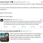 Bir diğer paylaşımında İran Ulusal Güvenlik Konseyi Başkanı Ali Laricani’nin “Trump çok konuşuyor, onu ciddiye almayın” dediği röportajı alıntılayan Graham, “İran’ın sözde ulusal güvenlik şefinden ABD Başkanı Donald Trump hakkında oldukça provokatif bir açıklama geldi” değerlendirmesinde bulundu. Graham, Trump’ı küçük düşürücü açıklamalar yapanların bunun sonuçlarına katlanmak zorunda kalacağı uyarısını yaptı.