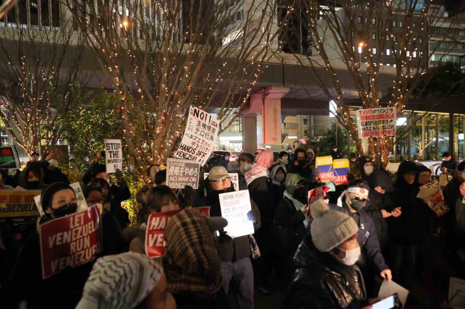 ABD’nin Venezule’ya saldırı düzenlenmesi ve ülkenin Devlet Başkanı Nicolas Maduro ve eşi Cilia Flores’i kaçırmasına yönelik protestolara bir yenisi eklendi. Japonya’nın başkenti Tokyo’da toplanan aralarında Venezuela vatandaşlarının da bulunduğu bir grup, ABD Başkanı Donald Trump’ın Venezuela’ya yönelik saldırısını protesto etti. Güvenlik kısıtlamaları nedeniyle ABD’nin Tokyo Büyükelçiliği’ne yaklaşık 200 metre uzaklıkta gerçekleştirilen protestoda göstericiler, ellerinde “Venezuela’da savaşa hayır”, “Japonya statükonun güç kullanarak değiştirilmesine tolerans göstermeyecek” ve “Venezuela hiçbir zaman ABD’nin olmayacak” yazılı pankartlar taşıdı. Göstericiler, ayrıca “Venezuela’dan elinizi çekin” sloganları ile Venezuela’nın bağımsızlığının ihlal edilmesine tepki gösterdi.