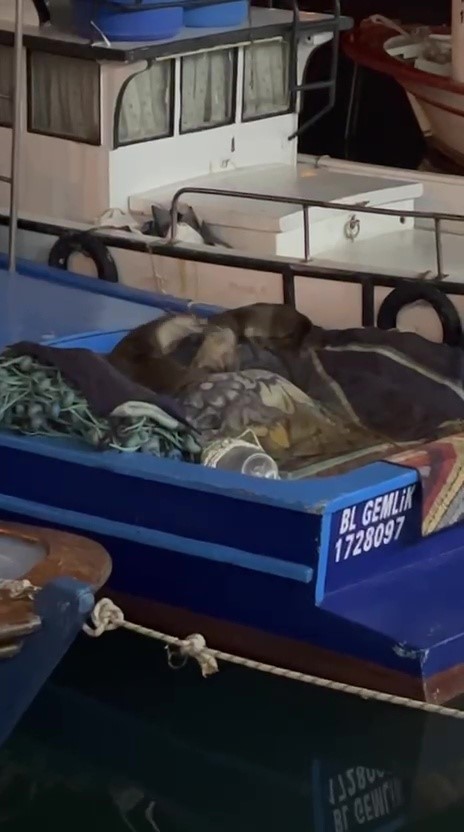 Gece saatlerinde limanda bulunan vatandaşlar, bir teknenin üzerinde hareketlilik fark etti. Yakından bakıldığında ise aç kaldıkları düşünülen anne su samuru ile yavrularının tekneye çıktığı görüldü. Bir süre tekne üzerinde dolaşan sevimli misafirler, limanda bulunanların ilgisini çekti.