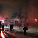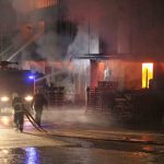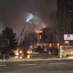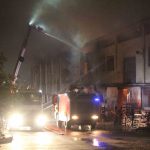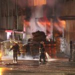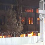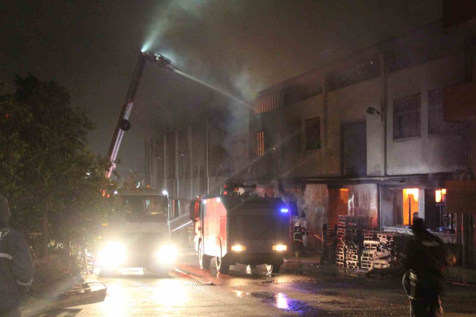 Alevlerin yükseldiği fabrikada itfaiyenin soğutma çalışması devam ediyor.