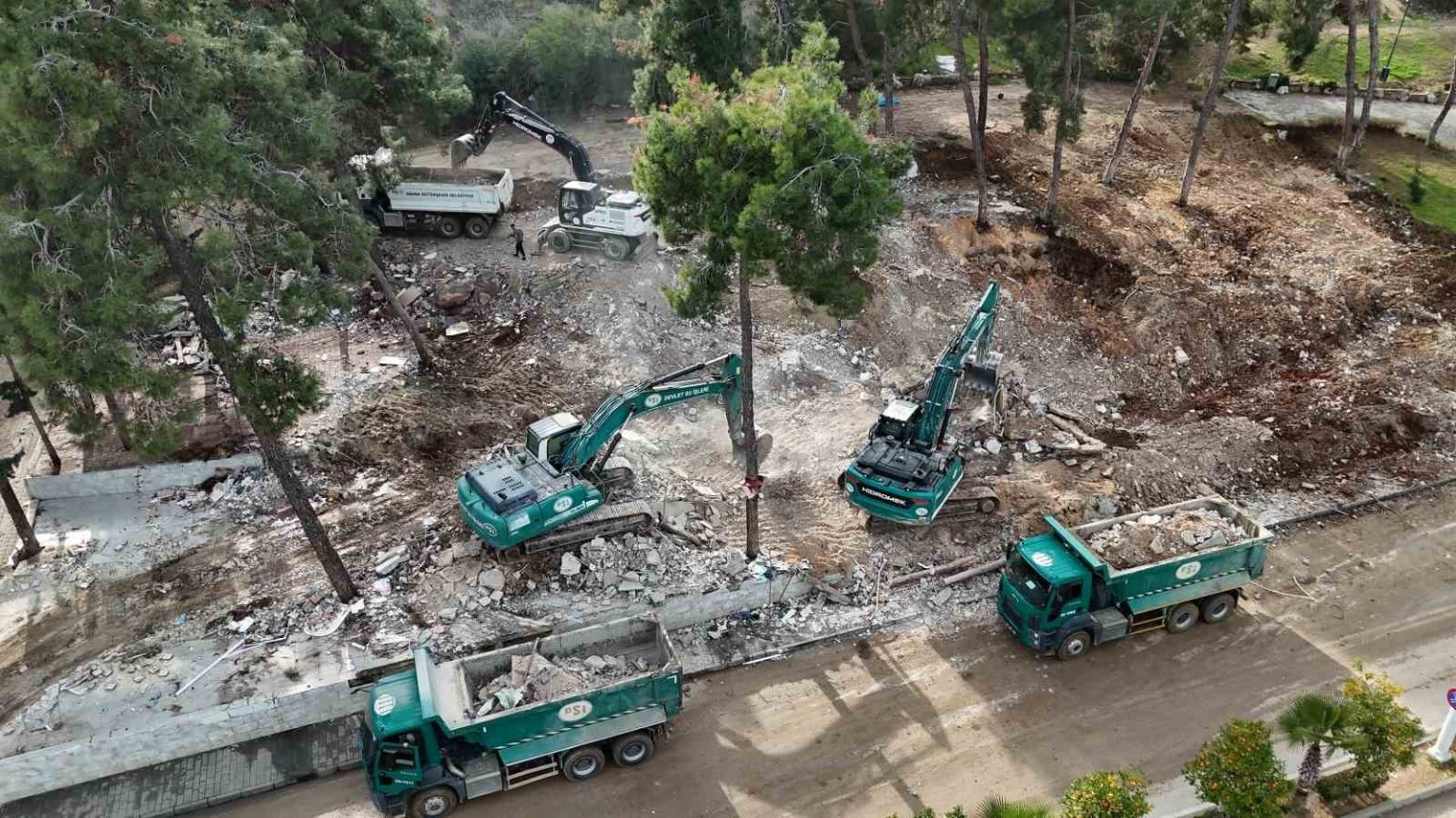 Yıkım çalışmaları dronla da görüntülendi.