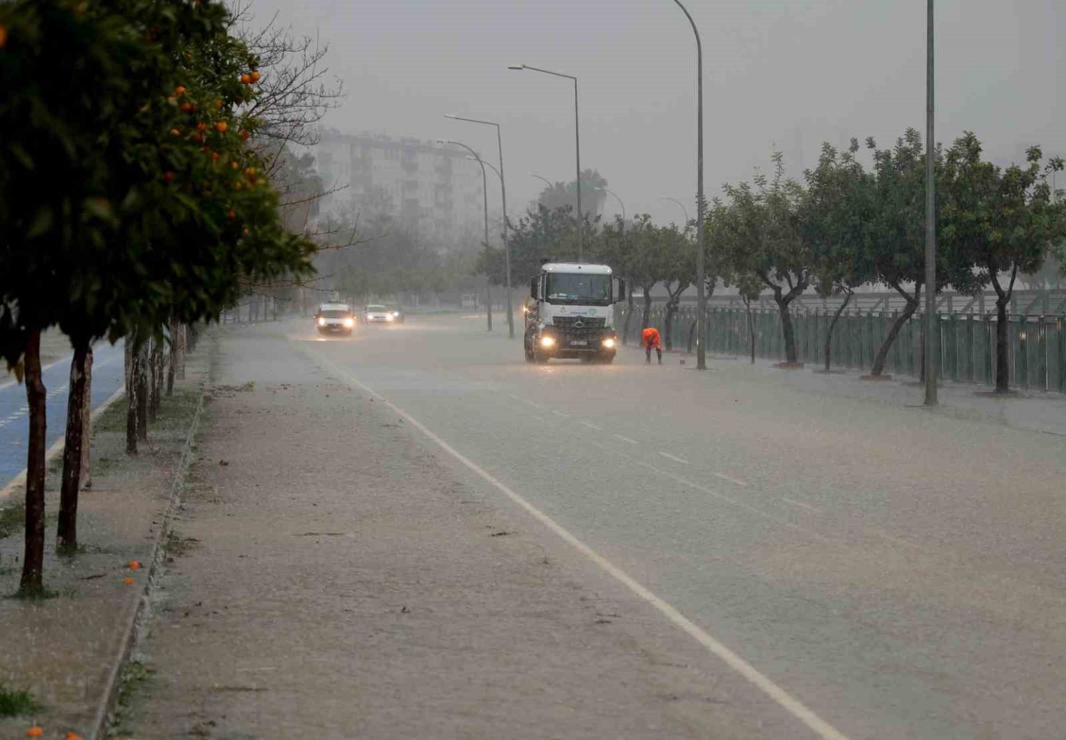 Adana’da şiddetli yağış yolları göle çevirdi, apartmanları su bastı