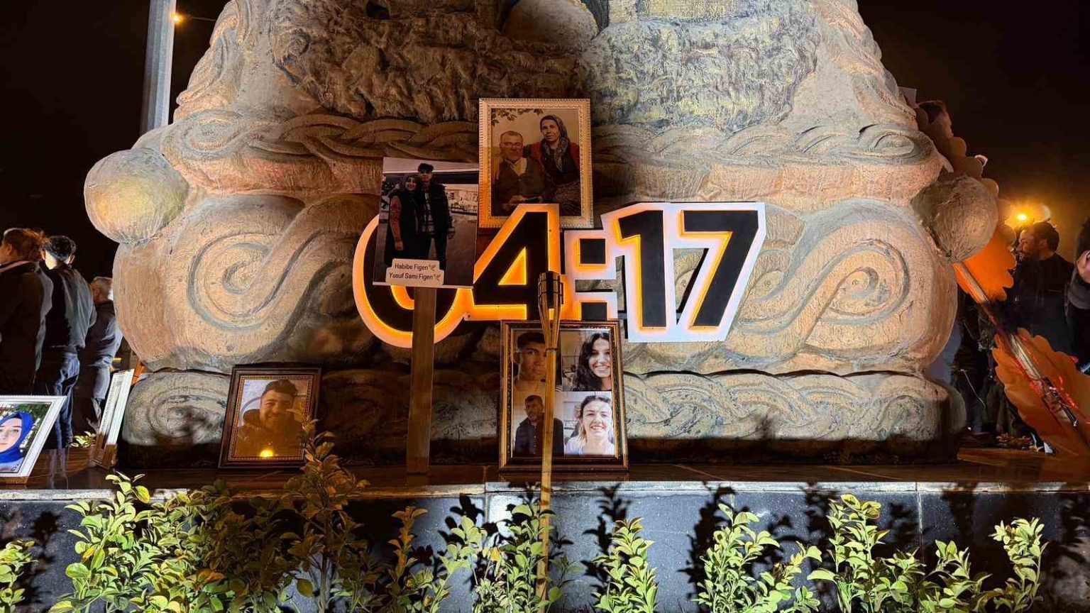 Depremin olduğu an 04.17’de zamanın durduğu saat kulesi etrafında toplanan kalabalık, saat kulesine karanfil bıraktı. Binlerce kişi ellerindeki siyah beyaz balonları gökyüzüne gönderdi. Sela okunarak, depremde hayatını kaybedenler için dualar edildi.